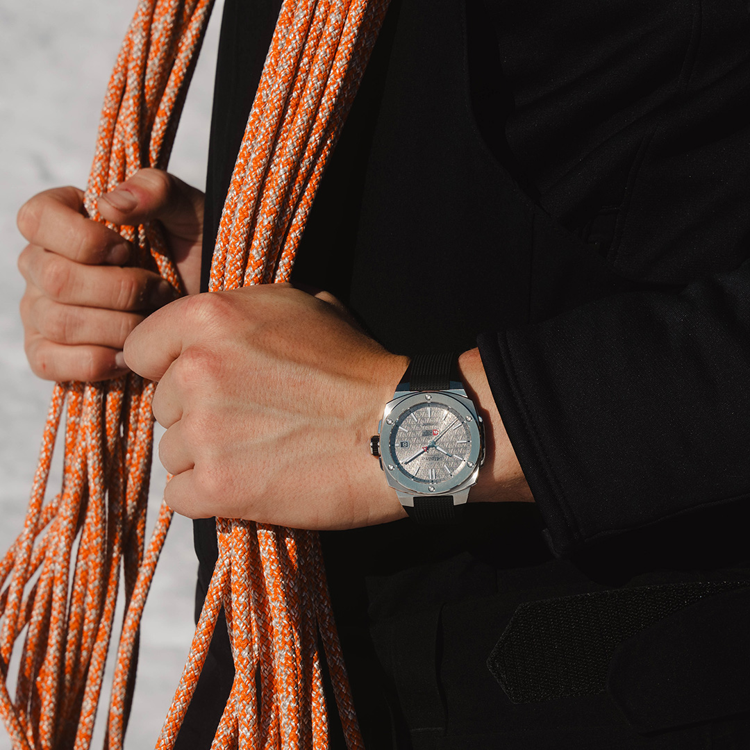 Kolekcia Alpiner nasleduje odkaz legendárneho športového modelu hodiniek Alpiner 4 a drží sa pôvodná DNA so štyrmi hlavnými parametrami (antimagnetické, nárazuvzdorné, vodeodolné a vyrobené z nerezovej ocele). Táto kombinácia robí z hodiniek Alpiner skvelý doplnok pre aktívny životný štýl a nesklamú vás ako na zemi, tak vo vzduchu alebo vo vode.