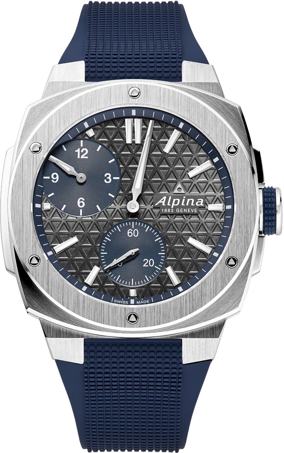 Alpina Alpiner Extreme Regulátor Automatic Limited Edition AL-650DGN4AE6 sú pánske automatické hodinky na modrom kaučukovom remienku s preklápacou sponou. Hranaté puzdro z nerezovej ocele široké 41 milimetrov má priehľadné viečko a signovanú skrutkovaciu korunku. Antracitový číselník s trojuholníkovým vzorom, efektom slnečného brusu a dvoma modrými subčíselníkmi je chránený odolným zafírovým sklom. Ručičky a indexy disponujú luminiscenčným náterom Super-LumiNova®, ktorý garantuje perfektnú čitateľnosť za zhoršených svetelných podmienok. Pohon hodiniek zaisťuje mechanický strojček AL-650 (základom je strojček SW461) s automatickým náťahom a rezervou chodu 38 hodín. S vodotesnosťou 20 ATM sú hodinky vhodné na hlbinné potápanie. Ide o limitovanú edíciu v počte 888 kusov pre celý svet.