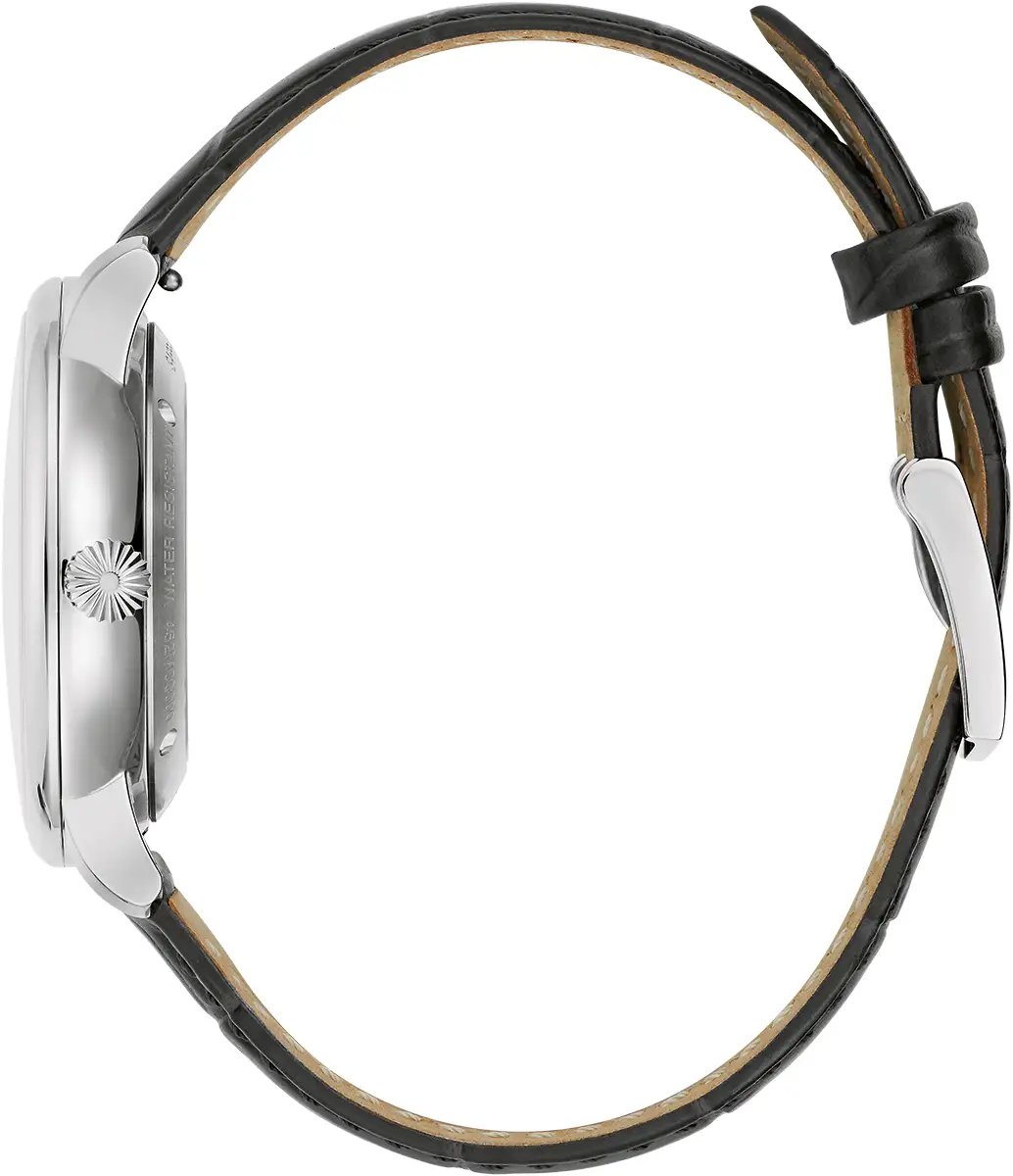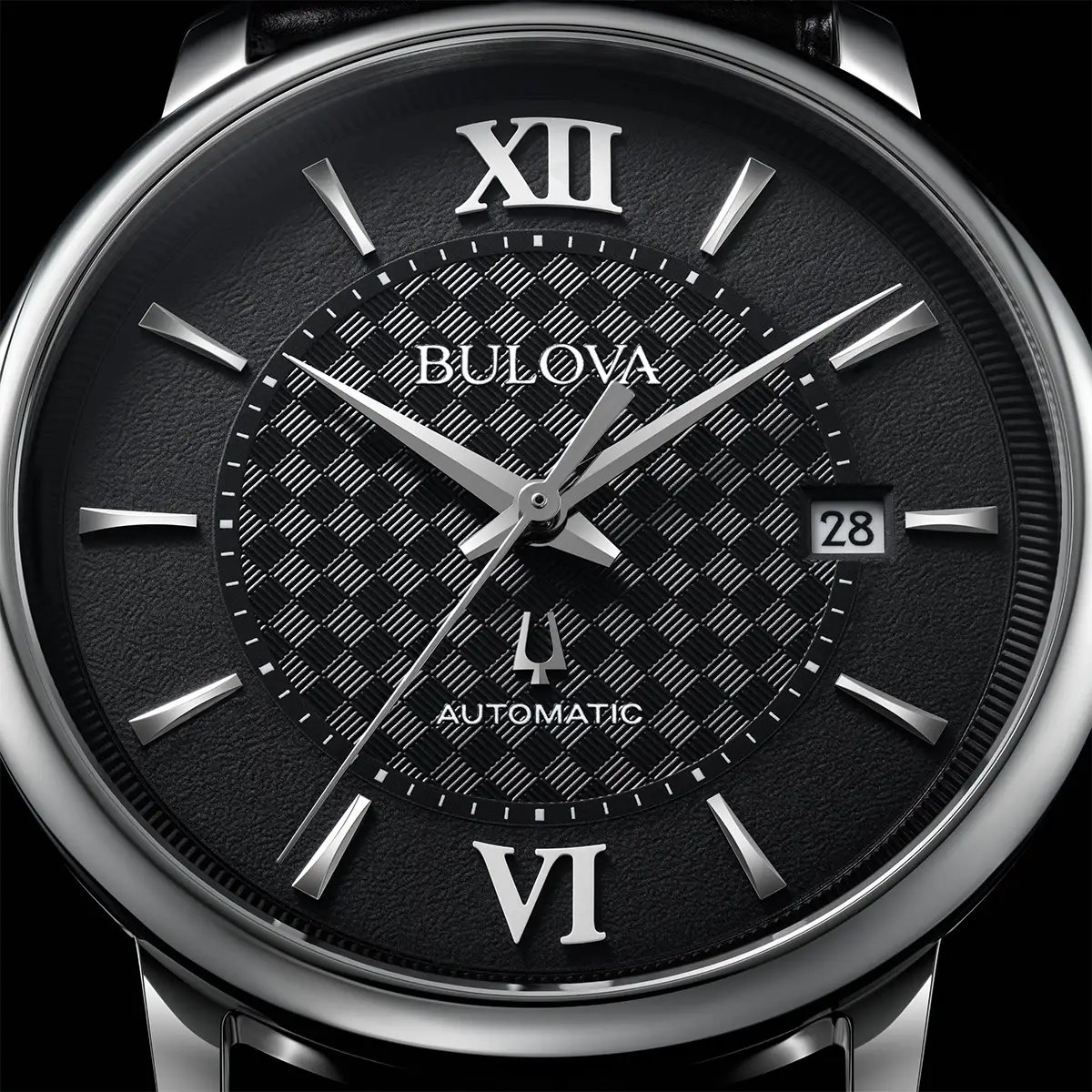 Bulova Classic Hudson Automatic 96B441 sú pánske elegantné automatické hodinky na čiernom koženom remienku s tŕňovou sponou. Puzdro z nerezovej ocele má priemer 39 milimetrov a priehľadné viečko. Čierny textúrovaný číselník s ukazovateľom dátumu je chránený odolným zafírovým sklom s antireflexnou vrstvou. Pohon hodiniek zaisťuje mechanický strojček 8215 s automatickým náťahom a rezervou chodu 42 hodín. S vodotesnosťou 3 ATM sú hodinky odolné proti dažďu a pri umývaní rúk.