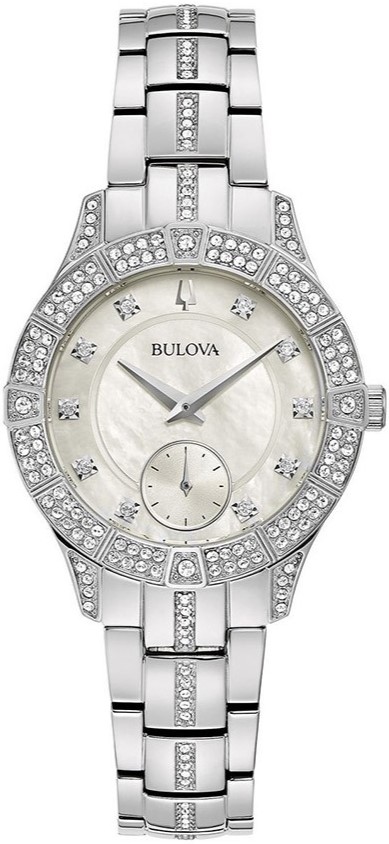 Bulova Crystal Phantom 96L291 sú dámske klasické batériové hodinky na oceľovom náramku s preklápacou sponou. Puzdro z nehrdzavejúcej ocele má priemer 30,5 milimetra. Luneta, nožičky puzdra a stredové články náramku sú zdobené celkom 174 krištáľmi Swarovski. Perleťový číselník s mimostrednou sekundovou ručičkou a 10 krištáľmi Swarovski na pozíciách indexov je chránený odolným minerálnym sklom a jeho krása vyniká najmä na priamom svetle, keď môžeme pozorovať hru farieb perlete. Pohon hodiniek zabezpečuje quartzový strojek. S vodotesnosťou 3 ATM sú hodinky odolné proti dažďu či umývaniu rúk.
