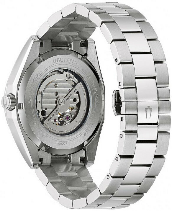 Bulova Surveyor Classic Automatic 96A275 sú pánske klasické automatické hodinky na oceľovom náramku s motýlikovou sponou. Puzdro z nehrdzavejúcej ocele má priemer 42 milimetrov a priehľadné viečo. Modrý číselník s efektom slnečného brusu a priehľadom na zotrvačník je chránený minerálnym sklom. Ručičky pokrýva luminiscenčný náter, ktorý po nasvietení garantuje dokonalú čitateľnosť v zhoršených svetelných podmienkach. Pohon hodiniek zabezpečuje mechanický strojček 82S0 s automatickým náťahom a rezervou chodu 42 hodín. S vodotesnosťou 3 ATM sú hodinky odolné proti dažďu a pri umývaní rúk.