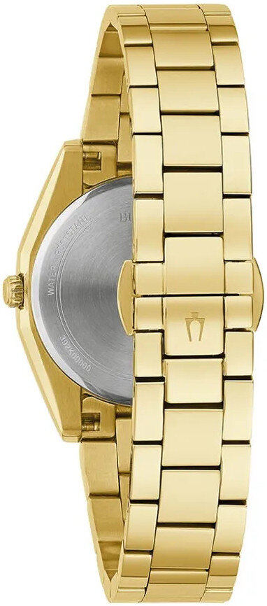 Bulova Surveyor Diamonds Quartz 97P172 sú dámske batériové hodinky na oceľovom náramku s povrchovou PVD úpravou zlatej farby a motýlikovou sponou. Puzdro z nehrdzavejúcej ocele v rovnakej farbe má priemer 31 milimetrov. Perleťový číselník s 11 diamantmi je chránený minerálnym sklom a jeho krása vyniká najmä na priamom svetle, keď môžeme pozorovať hru farieb perlete. Pohon hodiniek zabezpečuje quartzový strojček. S vodotesnosťou 3 ATM sú hodinky odolné proti dažďu a pri umývaní rúk.