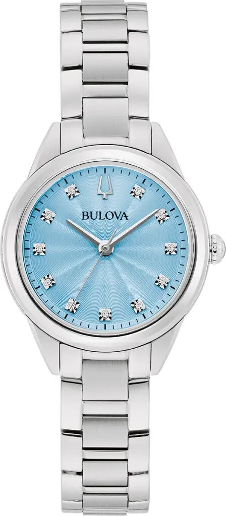 Bulova Sutton Diamonds Quartz 96P250 sú dámske klasické batériové hodinky na oceľovom náramku s preklápacou sponou. Puzdro z nehrdzavejúcej ocele má priemer 28 milimetrov. Svetlo modrý textúrovaný ciferník s 11 diamantmi je chránený odolným zafírovým sklom. Pohon hodín zabezpečuje quartzový strojček. S vodotesnosťou 3 ATM sú hodinky odolné proti dažďu a pri umývaní rúk.