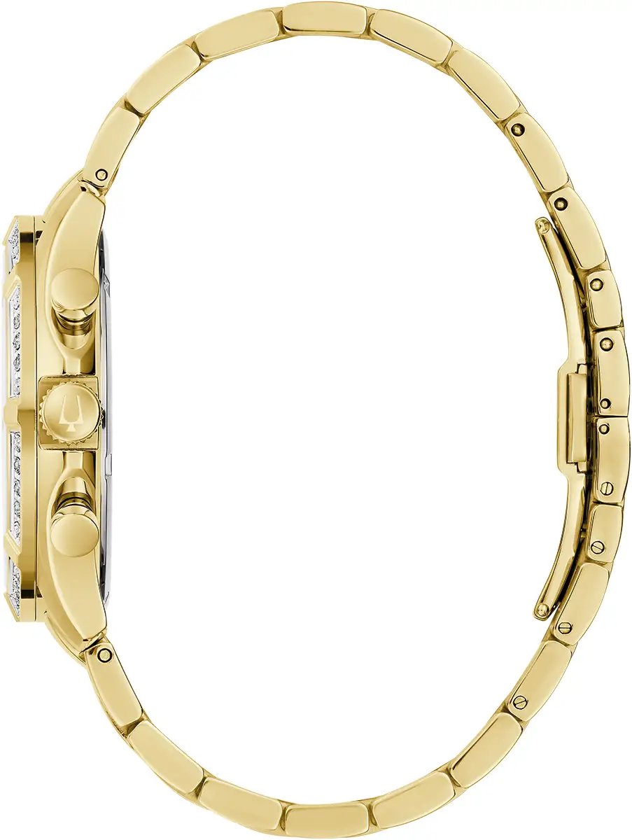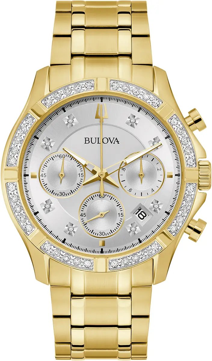 Bulova Sutton Diamonds Quartz 98E113 sú športové batériové unisex hodinky na oceľovom náramku s povrchovou PVD úpravou zlatej farby a motýlikovou sponou. Puzdro z nehrdzavejúcej ocele v rovnakej farbe má priemer 42 milimetrov a lunetu zdobenú diamantmi. Strieborný číselník s efektom slnečného brusu, ukazovateľom dátumu, stopkami a 8 diamantmi je chránený minerálnym sklom. Ručičky pokrýva luminiscenčný náter, ktorý po nasvietení garantuje dokonalú čitateľnosť pri zhoršených svetelných podmienkach. Pohon hodiniek zabezpečuje quartzový strojček. S vodotesnosťou 3 ATM sú hodinky odolné proti dažďu a pri umývaní rúk.