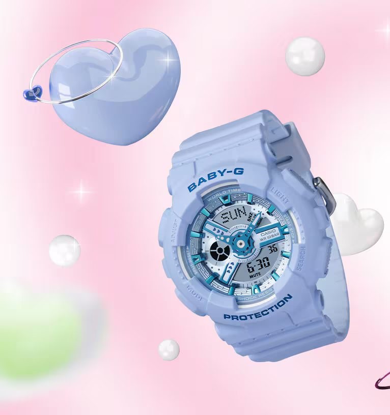 Casio Baby-G sú zmenšené verzie modelov G-Shock určené predovšetkým pre menšie zápästie. Modely tohto radu vychádzajú tak z tvarov pôvodného ikonického typu G-Shock DW-5000C z roku 1983, ako aj z radu ďalších obľúbených modelov. Hodinky Baby-G sa vyznačujú puzdrom z epoxidovej živice a celkovým športovým vzhľadom v rade farebných prevedení. S vodotesnosťou 100 metrov a mnohými funkciami vrátane stopiek, budíka, timera a kalendára poslúži ako praktický aj štýlový doplnok pri každodennom nosení a športe.