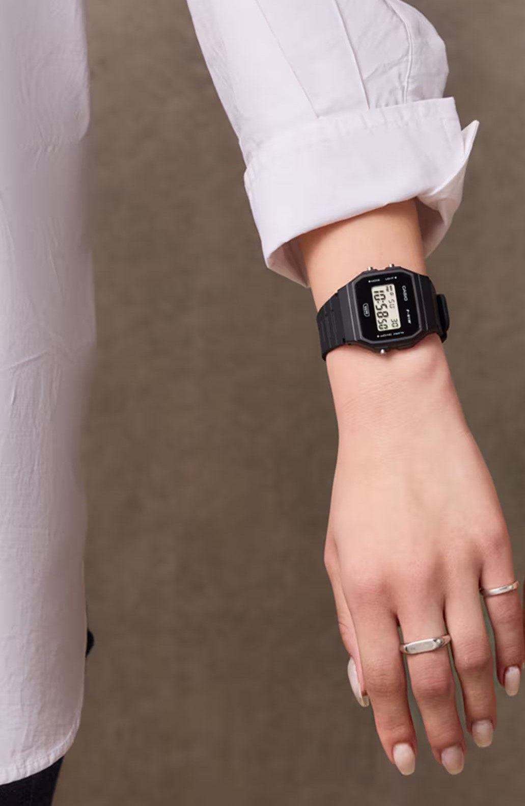 Keď firma o dvadsať rokov neskôr rozširovala svoje portfólio, padla voľba na náramkové hodinky, ktoré v tom čase prechádzali revolúciou v podobe nástupu quartzovej technológie. Práva na tú v kombinácii s digitálnym zobrazením času Casio najprv stavilo. Firma v tejto kombinácii videla príležitosť na využitie svojej pokročilej technológie integrovaných obvodov vyvinutej práve pre kalkulačky. Vďaka tomu boli prvé hodinky Casiotron taktiež prvými hodinkami s automatickým kalendárom, ktorý správne nastavoval dátum v kratších a dlhších mesiacoch. Rýchlo potom hodinky Casio dostali ďalšie pokročilé funkcie ako večný kalendár so správnou funkciou pre priestupné roky, stopky, svetový čas a ďalšie. Inovácie ale prichádzali aj v ďalších oblastiach: Casio prvýkrát použilo pre telo hodiniek plast, v roku 1983 firma uviedla prvú skutočne nárazu odolné hodinky G-Shock.