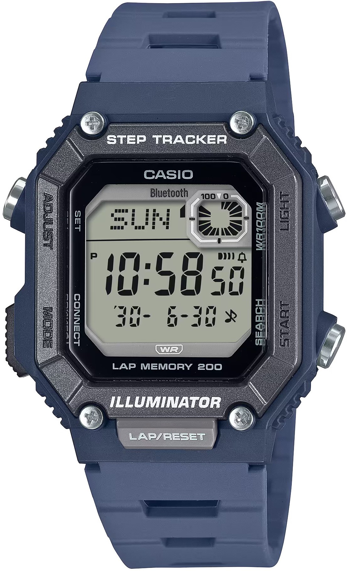 svetový čas , dátum , budík , krokomer , stopky , Bluetooth , časovač , mesiac v roku , svetlo , kalendár , deň v týždni , duálny čas