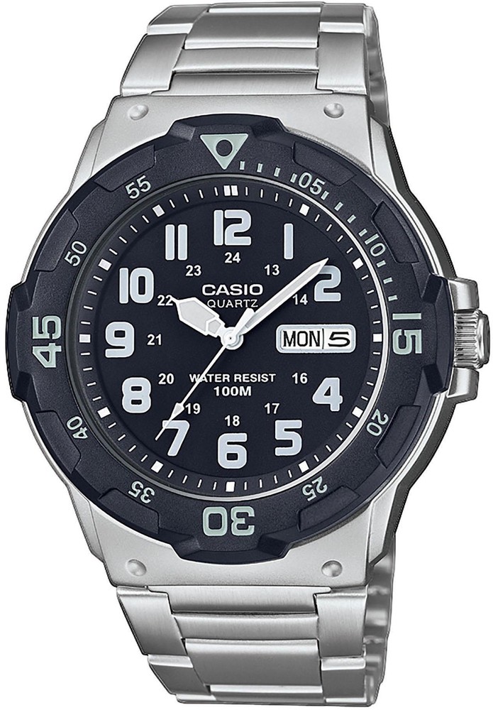 Casio Collection MRW-200HD-1BVEF sú pánske športové batériové hodinky s oceľovým náramkom a preklápacou sponou. Puzdro vyrobené zo živice má priemer 44,6 milimetra. Čierny číselník s ukazovateľom dňa a dátumu na tretej hodine je chránený plastovým sklíčkom. Ručičky a indexy sú vybavené luminiscenčnou vrstvou, ktorá po nasvietení zaisťuje lepšiu čitateľnosť za zhoršených svetelných podmienok. S vodotesnosťou 10 ATM sú hodinky vhodné na plávanie či šnorchlovanie.