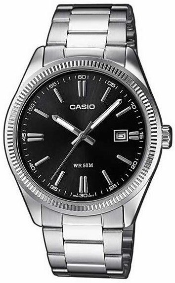 Casio Collection MTP-1302PD-1A1VEF sú pánske quartzové hodinky v klasickom štýle s oceľovým náramkom a mosadzným puzdrom s priemerom 38,5 milimetra. Prehľadný čierny číselník s efektom slnečného brusu a ukazovateľom dátumu na tretej hodine je chránený minerálnym sklom. Ručičky vybavené luminiscenčnou vrstvou po nasvietení zaisťujú lepšiu čitateľnosť za zhoršených svetelných podmienok. Vodotesnosť hodiniek je 5 ATM a sú teda odolné proti dažďu a pri sprchovaní.