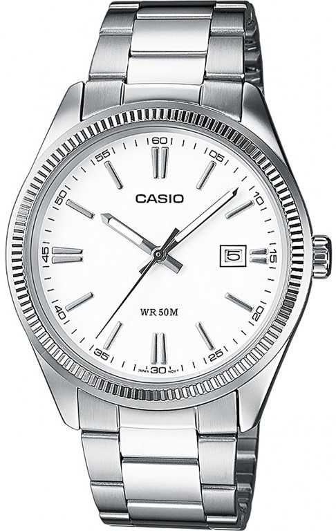 Casio Collection MTP-1302PD-7A1VEF sú pánske quartzové hodinky v klasickom štýle s oceľovým náramkom a mosadzným puzdrom s priemerom 38,5 milimetra. Prehľadný biely číselník s ukazovateľom dátumu na tretej hodine je chránený minerálnym sklom. Ručičky vybavené luminiscenčnou vrstvou po nasvietení zaisťujú lepšiu čitateľnosť za zhoršených svetelných podmienok. Vodotesnosť hodiniek je 5 ATM a sú teda odolné proti dažďu a pri sprchovaní.