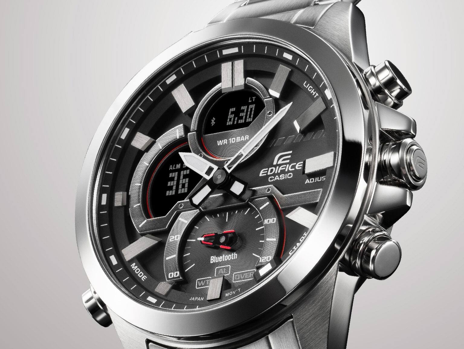 Casio Edifice ECB-30D-1AEF sú pánske quartzové hodinky, ktorých puzdro s priemerom 48,7 milimetra je spolu s náramkom vyrobené z nerezovej ocele. Čierny kombinovaný číselník s červenými detailmi je chránený minerálnym sklíčkom. Ručičky a indexy sú pokryté luminiscenčnou vrstvou, ktorá spolu s dvojitým LED podsvietením displeja zaisťuje lepšiu čitateľnosť za zhoršených svetelných podmienok. Hodinky poháňa batériový strojček a disponujú funkciou stopiek s presnosťou 1/1000 sekúnd, timerom, kalendárom vrátane ukazovateľa dátumu, dňa v týždni a mesiaca, budíkom a svetovým časom. Dajú sa synchronizovať s chytrým telefónom pomocou technológie Bluetooth a vďaka funkcii Phone finder sa po stlačení tlačidla hodiniek rozoznie váš telefón, čo uľahčí jeho hľadanie. Vodotesnosť hodiniek je 10 ATM a sú teda vhodné na plávanie aj šnorchlovanie.