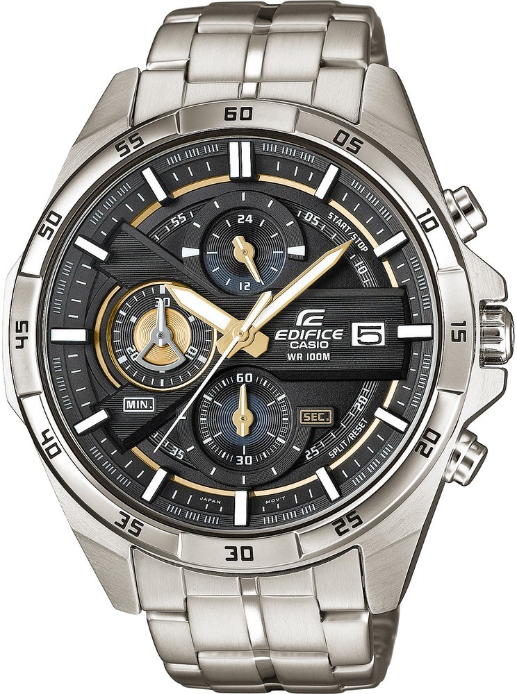 Casio Edifice EFR-556D-1AVUEF sú pánske športové quartzové hodinky, ktorých puzdro s priemerom 48,7 milimetra je spolu s náramkom vyrobené z nerezovej ocele. Čierny číselník s chronografom, dátumovkou a ukazovateľom času v 24-hodinovom formáte je chránený minerálnym sklíčkom. Ručičky a indexy sú vybavené luminiscenčnou vrstvou, ktorá po nasvietení zaisťuje lepšiu čitateľnosť za zhoršených svetelných podmienok. Hodinky s vodotesnosťou 10 ATM sú vhodné na plávanie aj šnorchlovanie.