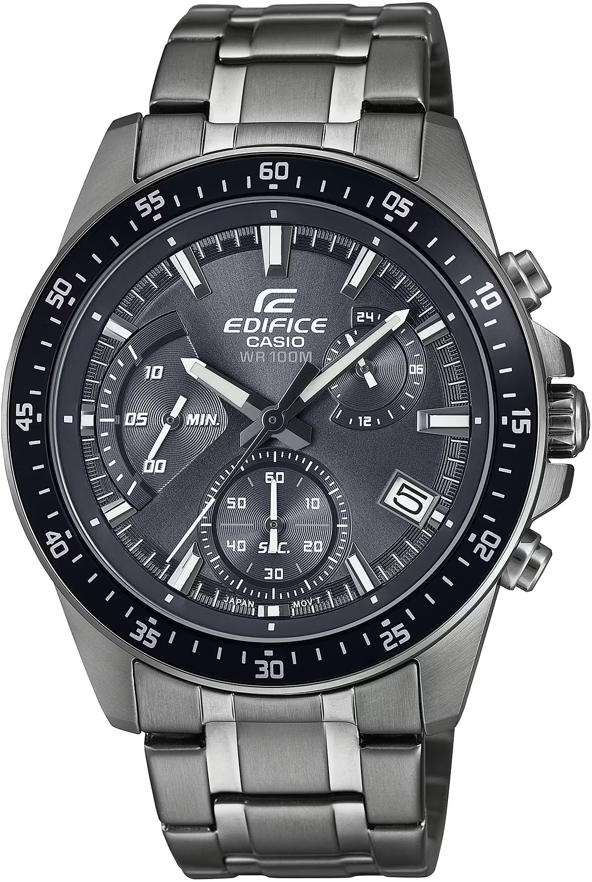 Casio Edifice EFV-540DC-1CVUEF sú pánske športové quartzové hodinky, ktorých puzdro s priemerom 43,8 milimetra je spolu s náramkom vyrobené z nerezovej ocele s PVD úpravou šedej farby. Antracitový číselník s chronografom, dátumovkou a ukazovateľom času v 24-hodinovom formáte je chránený minerálnym sklíčkom. Ručičky a indexy sú vybavené luminiscenčnou vrstvou, ktorá po nasvietení zaisťuje lepšiu čitateľnosť za zhoršených svetelných podmienok. Hodinky s vodotesnosťou 10 ATM sú vhodné na plávanie aj šnorchlovanie.