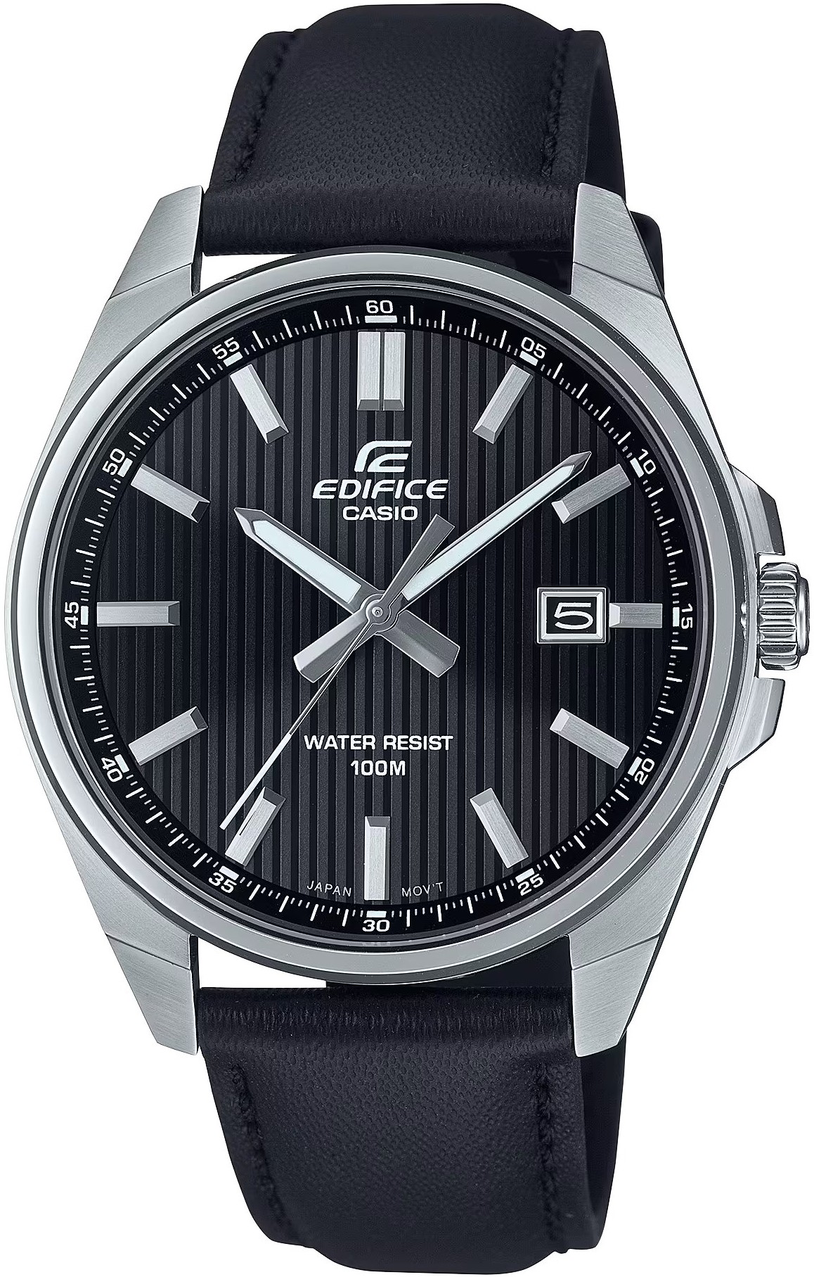 Casio Edifice EFV-150L-1AVUEF sú pánske elegantné quartzové hodinky, ktorých oceľové puzdro s priemerom 42,6 milimetra dopĺňa čierny kožený remienok s tŕňovou sponou. Čierny číselník s prúžkami a dátumovkou na tretej hodine je chránený minerálnym sklíčkom. Ručičky disponujú luminiscenčnou vrstvou, ktorá po nasvietení zaisťuje lepšiu čitateľnosť za zhoršených svetelných podmienok. Vodotesnosť hodiniek je 10 ATM a sú teda vhodné na plávanie aj šnorchlovanie.
