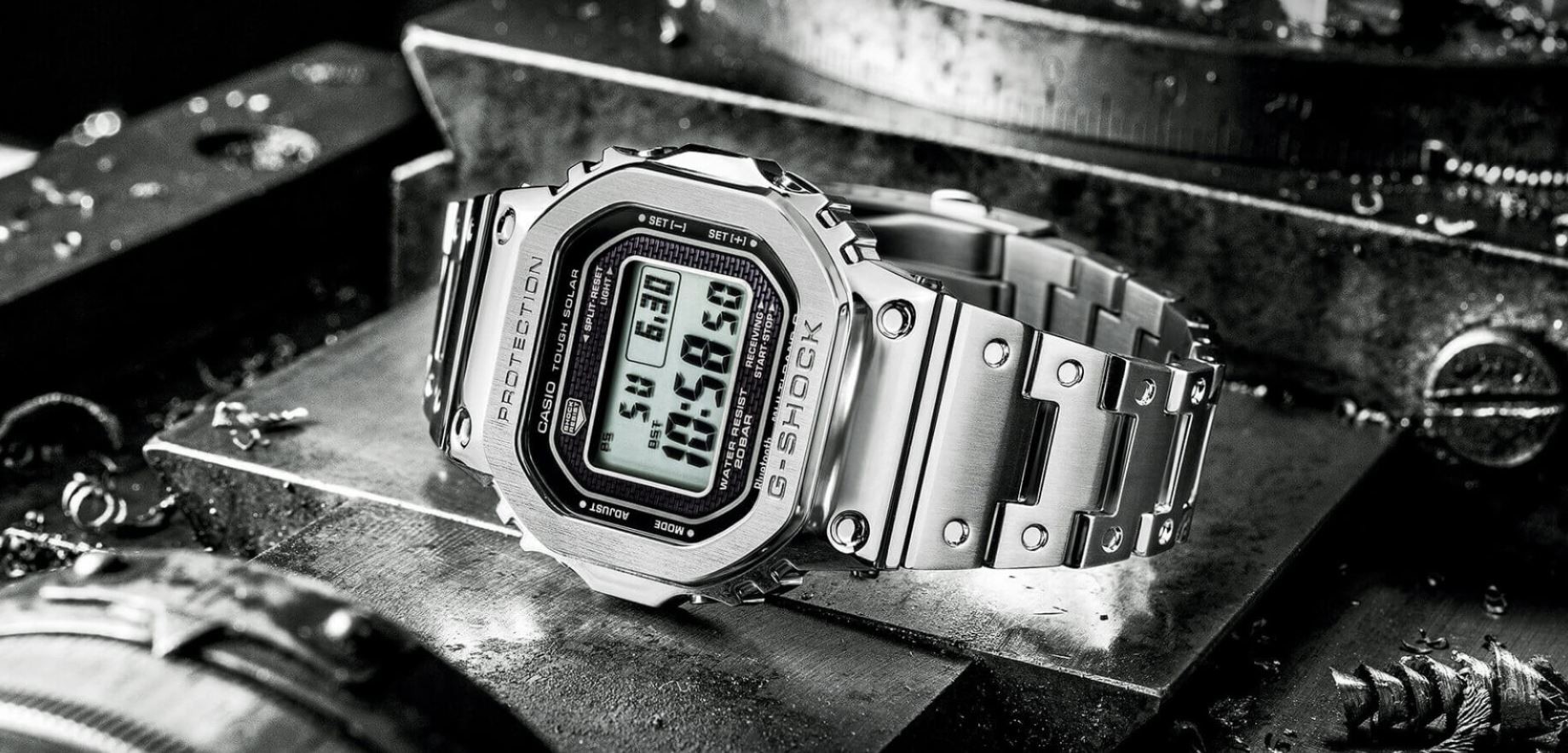 Ikonický obdĺžnikový model z radu 5000 sa pri príležitosti 35-ročného výročia výroby hodiniek G-Shock obliekol kompletne do nerezovej ocele Zaujímavé je aj dýnko hodiniek, ktoré je vytvrdené čiernou vrstvou DLC (Diamond Like Carbon), ktorá patrí k najtvrdším povrchovým úpravám proti poškriabaniu.