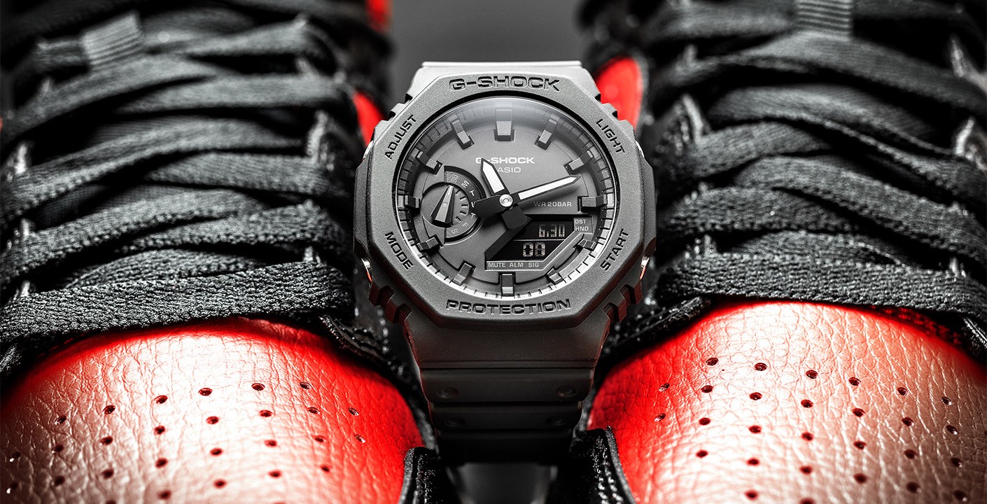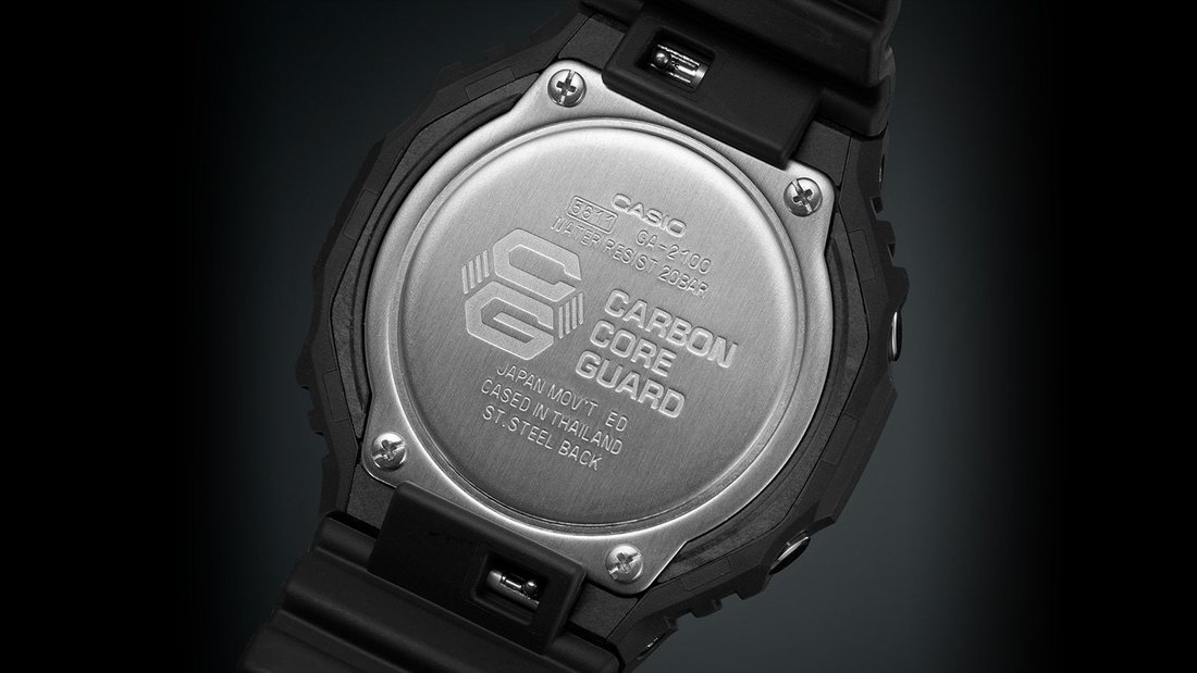 Kolekcia G-Shock GA-2100 predstavuje najtenšie hodinky zo súčasných modelov G-Shock, ich puzdro s priemerom 45,4 milimetrov vyrobené zo živice má totiž výšku iba 11,8 milimetrov. Puzdro disponuje novým poňatím lunety pôvodného modelu G-Shock DW-5000C z roku 1983, na ktorý tento rad nadväzuje. Okrem nového dizajnu sa tento rad od modelu DW-5000C líši novou konštrukciou Carbon Core Guard alebo vystužením puzdra karbónovými vláknami, ktoré zaisťuje vysokú odolnosť puzdra a zároveň nízku hmotnosť hodiniek – iba 51 gramov. Tradične tvarovaný remienok s tŕňovou sponou je vyrobený zo živice s matnou úpravou. O chod hodiniek sa stará batéria so životnosťou až 3 roky a je možné sa s nimi aj potápať, pretože ich vodotesnosť dosahuje 200 metrov.
