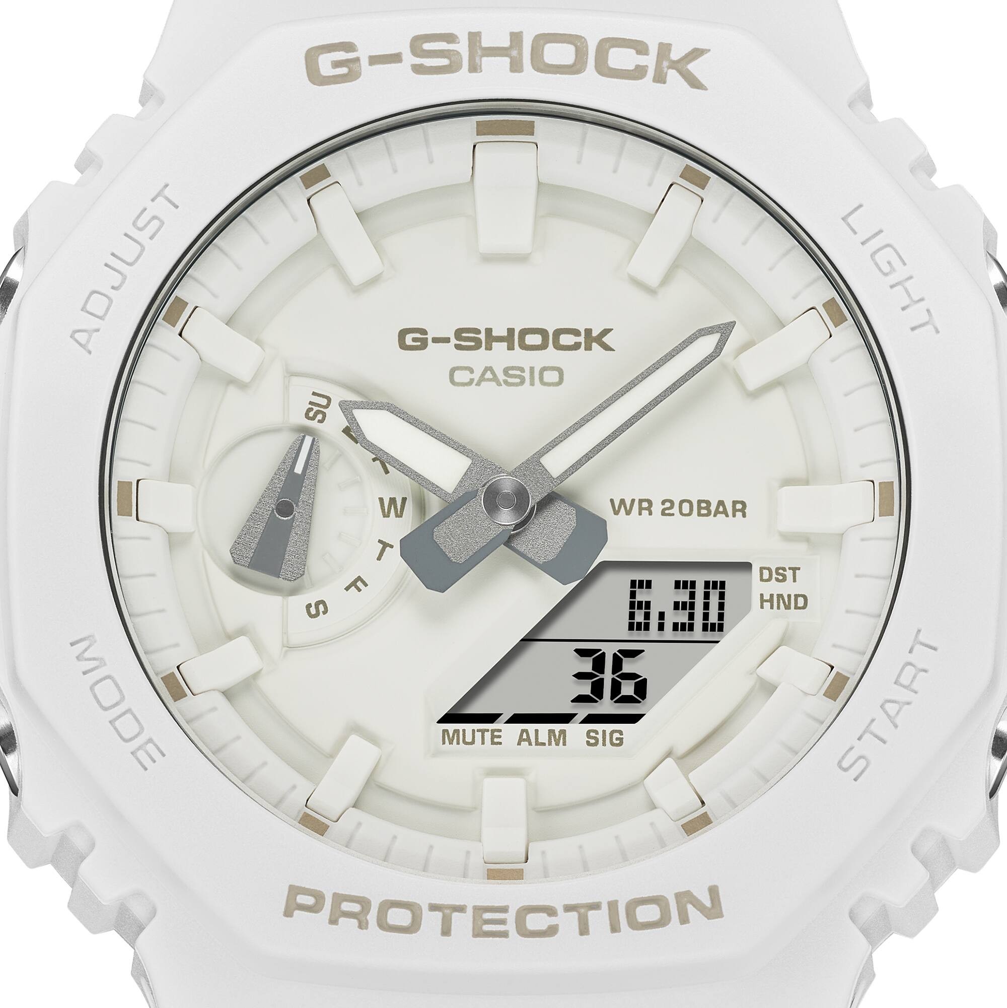 Séria G-Shock GA-2100 predstavuje najtenšie hodinky zo súčasných modelov G-Shock, ktorých puzdro s priemerom 45,4 milimetrov vyrobené zo živice má totiž výšku iba 11,8 milimetrov. Puzdro disponuje novým poňatím lunety pôvodného modelu G-Shock DW-5000C z roku 1983, na ktorý táto rada nadväzuje. Okrem nového dizajnu sa táto kolekcia od modelu DW-5000C líši novou konštrukciou Carbon Core Guard alebo vystužením puzdra karbónovými vláknami, ktoré zaisťuje vysokú odolnosť puzdra a zároveň nízku hmotnosť hodiniek – iba 51 gramov. Tradične tvarovaný remienok s tŕňovou sponou je vyrobený zo živice s matnou úpravou. O chod hodiniek sa stará batéria so životnosťou až 3 roky a je možné sa s nimi aj potápať, pretože ich vodotesnosť dosahuje 200 metrov.