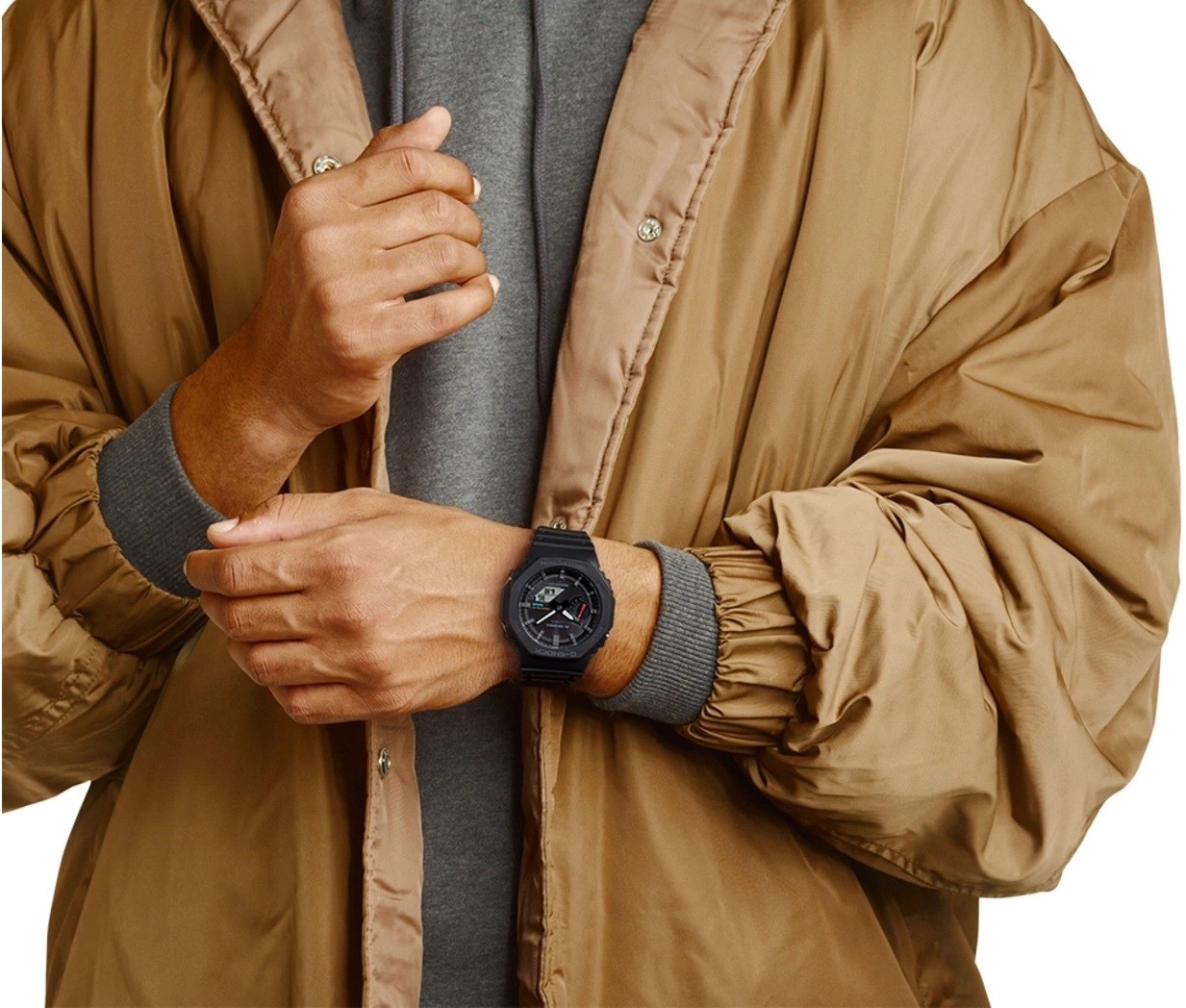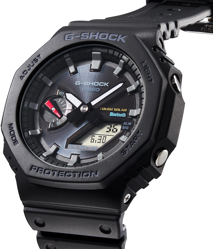 Rad G-Shock GA-B2100 predstavuje najtenšie hodinky zo súčasných modelov G-Shock, ich puzdro s priemerom 45,4 milimetrov vyrobené zo živice má totiž výšku iba 11,9 milimetrov. Puzdro disponuje novým poňatím lunety pôvodného modelu G-Shock DW-5000C z roku 1983, na ktorý tento rad nadväzuje. Okrem nového dizajnu sa tento rad od modelu DW-5000C líši novou konštrukciou Carbon Core Guard alebo vystužením puzdra karbónovými vláknami, ktoré zaisťuje vysokú odolnosť puzdra a zároveň nízku hmotnosť hodiniek – iba 52 gramov. Tradične tvarovaný remienok s tŕňovou sponou je vyrobený zo živice s matnou úpravou. O chod hodiniek sa stará strojček so solárnym napájaním a je možné sa s nimi aj potápať, pretože ich vodotesnosť dosahuje 200 metrov. Dajú sa tiež synchronizovať s chytrým telefónom pomocou Bluetooth.
