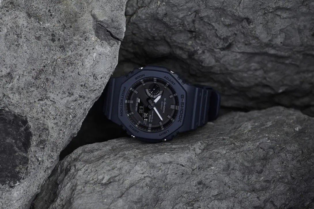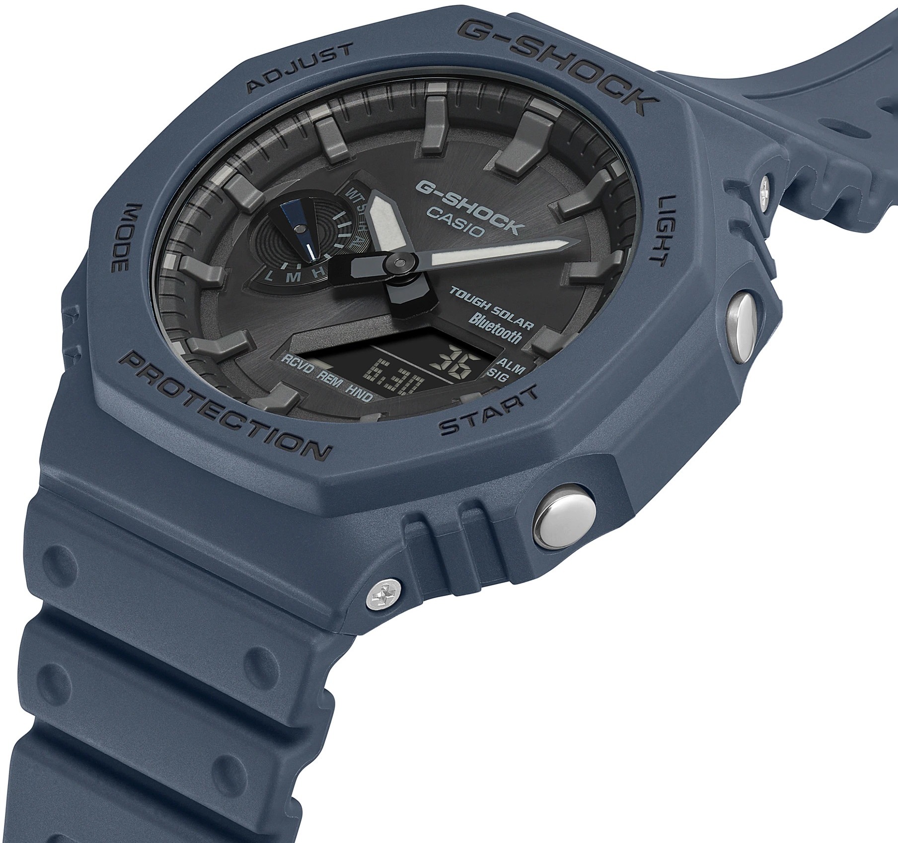 Rad G-Shock GA-B2100 predstavuje najtenšie hodinky zo súčasných modelov G-Shock, ich puzdro s priemerom 45,4 milimetrov vyrobené zo živice má totiž výšku iba 11,9 milimetrov. Puzdro disponuje novým poňatím lunety pôvodného modelu G-Shock DW-5000C z roku 1983, na ktorý tento rad nadväzuje. Okrem nového dizajnu sa tento rad od modelu DW-5000C líši novou konštrukciou Carbon Core Guard alebo vystužením puzdra karbónovými vláknami, ktoré zaisťuje vysokú odolnosť puzdra a zároveň nízku hmotnosť hodiniek – iba 52 gramov. Tradične tvarovaný remienok s tŕňovou sponou je vyrobený zo živice s matnou úpravou. O chod hodiniek sa stará strojček so solárnym napájaním a je možné sa s nimi aj potápať, pretože ich vodotesnosť dosahuje 200 metrov. Dajú sa tiež synchronizovať s chytrým telefónom pomocou Bluetooth.