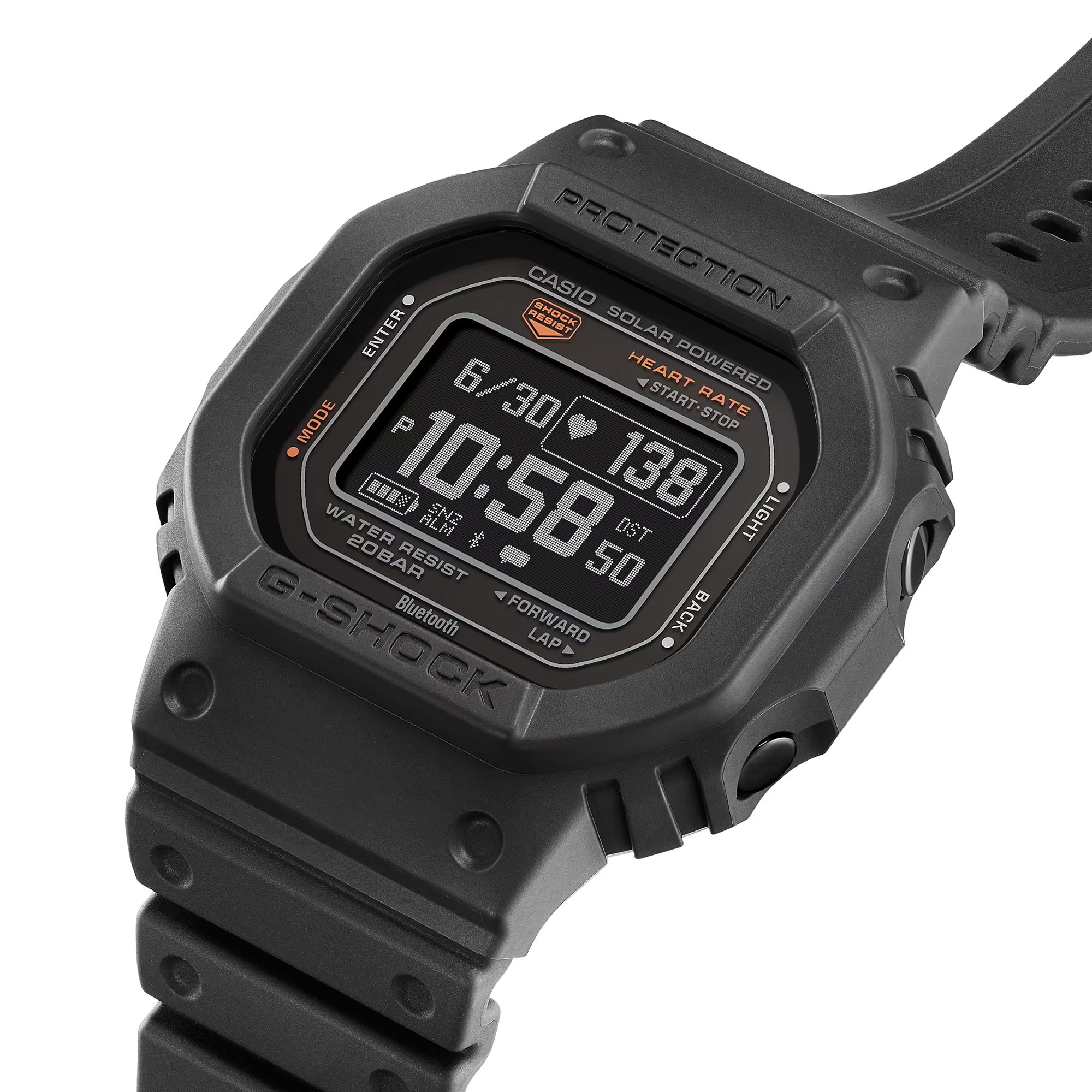 Športové hodinky G-Shock G-Squad DW-H5600 vám umožní sledovať svoje športové výsledky a zároveň mať pod kontrolou svoje zdravie. Sú vybavené optickým snímačom na meranie srdcového tepu na zadnej strane puzdra. Senzor využíva svetlo LED na meranie zmien prietoku krvi na sledovanie srdcového tepu. Hodinky disponujú aj akcelerometrom na počítanie krokov. Pre ešte väčšiu presnosť merania vzdialenosti stačí hodinky spárovať so smartfónom a jeho GPS upraví údaje zachytené akcelerometrom hodiniek.