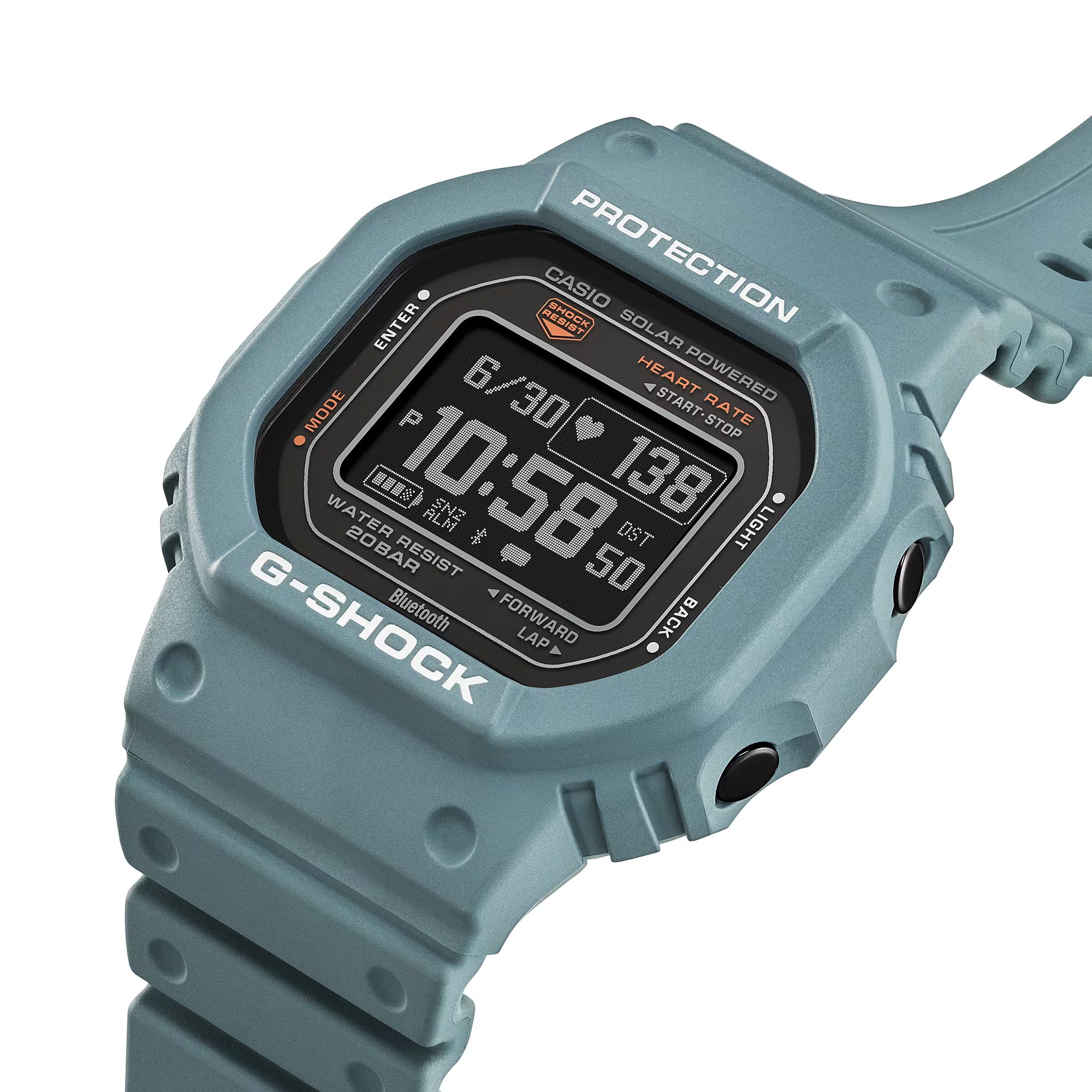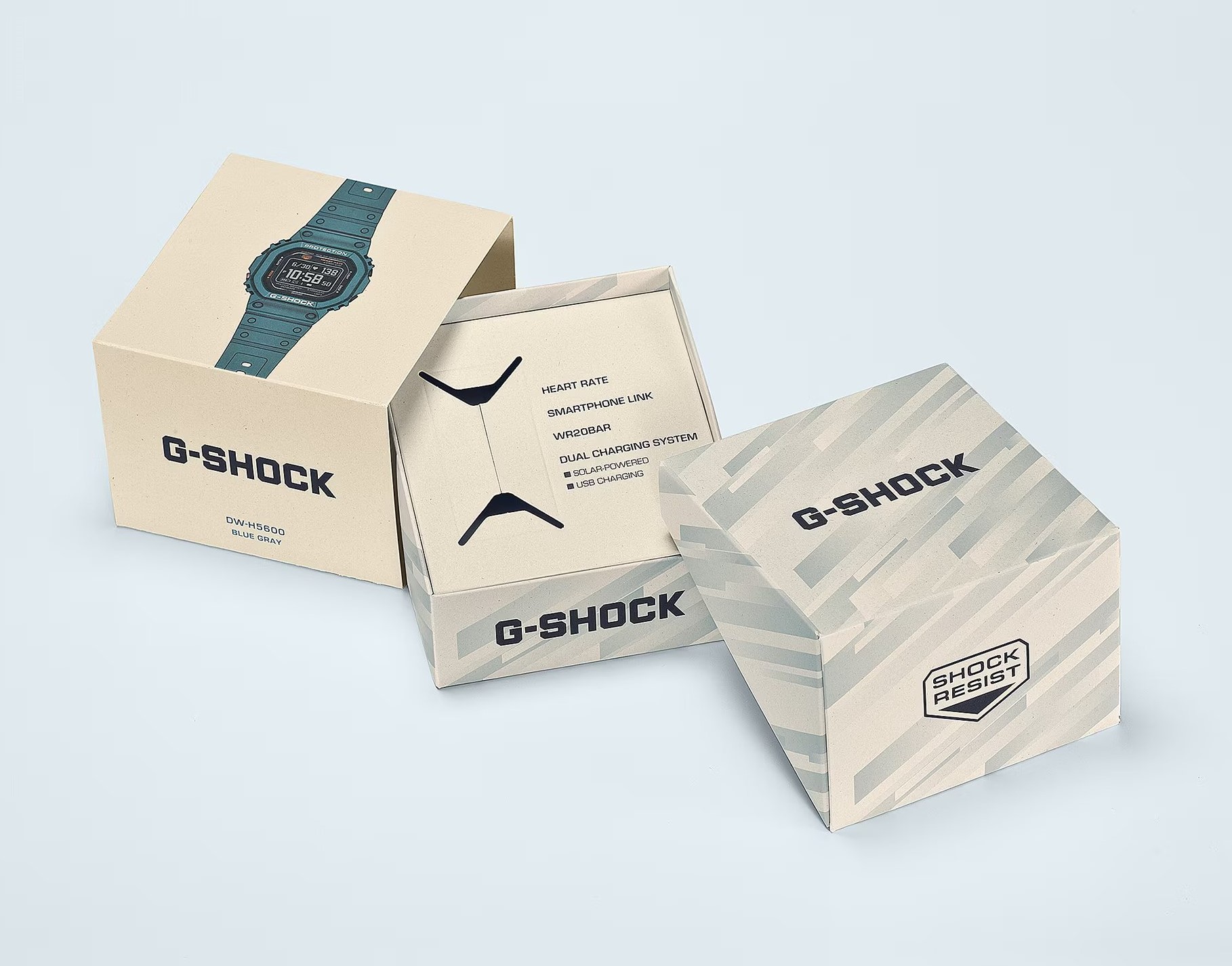 Športové hodinky G-Shock G-Squad DW-H5600 vám umožní sledovať svoje športové výsledky a zároveň mať pod kontrolou svoje zdravie. Sú vybavené optickým snímačom na meranie srdcového tepu na zadnej strane puzdra. Senzor využíva svetlo LED na meranie zmien prietoku krvi na sledovanie srdcového tepu. Hodinky disponujú aj akcelerometrom na počítanie krokov. Pre ešte väčšiu presnosť merania vzdialenosti stačí hodinky spárovať so smartfónom a jeho GPS upraví údaje zachytené akcelerometrom hodiniek.