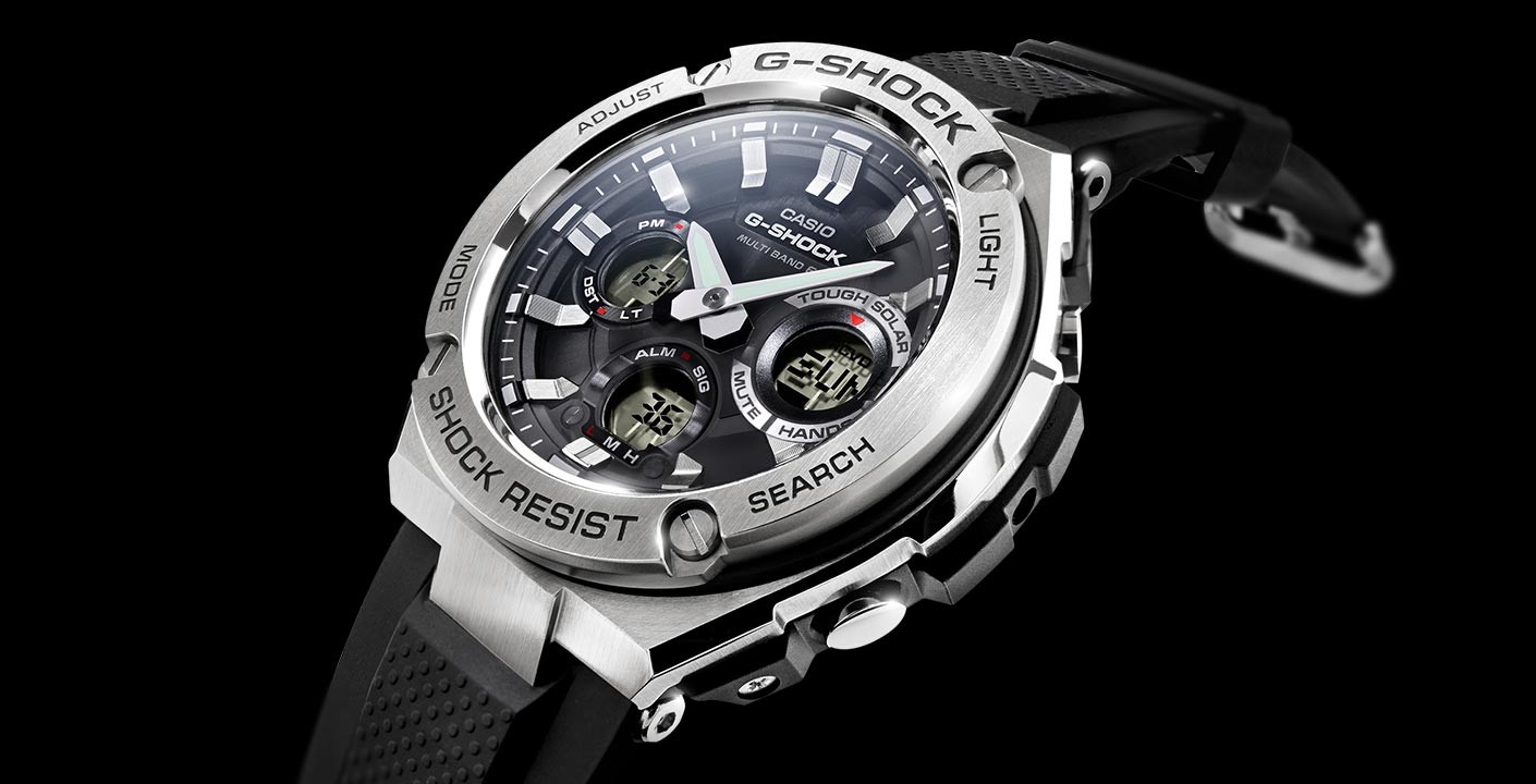 Pod označením G-Steel nájdeme odolné modely s kruhovým oceľovým puzdrom a bohatou ponukou funkcií. Typická je tu veľkosť puzdra zhruba od 50 milimetrov vyššie, čo tieto modely určuje predovšetkým pre záujemcov s veľkým priemerom zápästia. Hodinky majú klasické analógové zobrazenie času, väčšina k tomu ale pridáva aj kombinované digitálne zobrazenie niektorých ďalších funkcií. V rade G-Steel možno vybrať aj hodinky, ktoré majú napríklad podporu Bluetooth alebo solárne napájanie strojčeka.