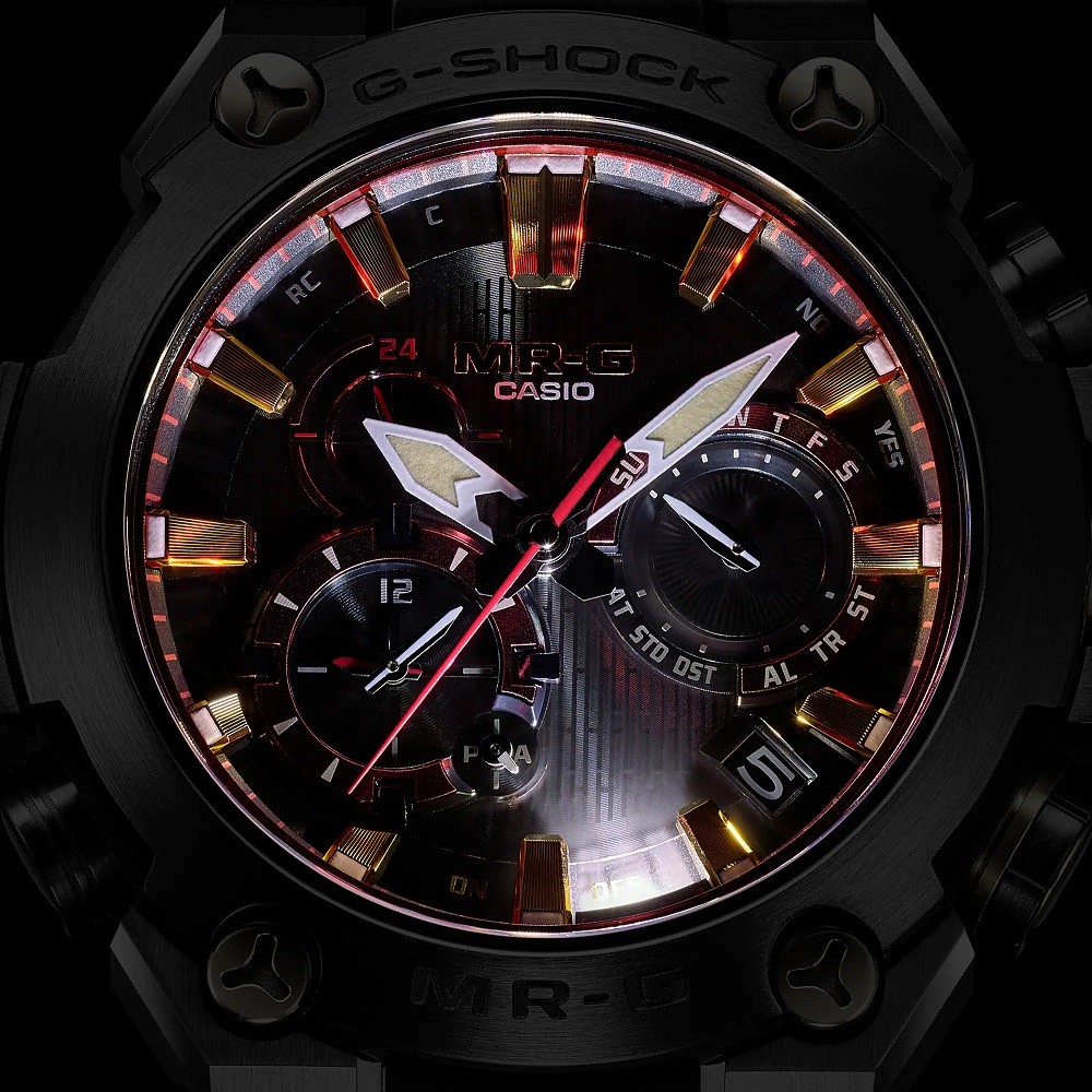 Pod označením MR-G sa ukrýva vlastne to najlepšie, čo vie Casio ponúknuť. Cena modelov tohto radu môže ľahko prekročiť čiastku 1000 eur a ide o skutočne luxusné kúsky. Ich tvary a funkcie síce vychádzajú z bežných edícií, ako napríklad obľúbené „G-Shock square“ alebo Frogman, použité materiály a celkové spracovanie sú však celkom výnimočné. Napríklad u puzdier a náramkov používa Casio v tejto rade špičkové materiály, najmä špeciálne titánové zliatiny. Nechýbajú detaily z drahých kovov alebo dokonalé leštenie, ktoré mávajú luxusné hodinky Grand Seiko. Samozrejmosťou sú zafírové sklíčka. Špeciálna konštrukcia potom posúva celkovú odolnosť týchto modelov ešte o stupienok vyššie, než je u hodiniek G-Shock bežné. Modely MR-G vždy ručne zostavujú tí najlepší hodinári spoločnosti Casio v Japonsku.