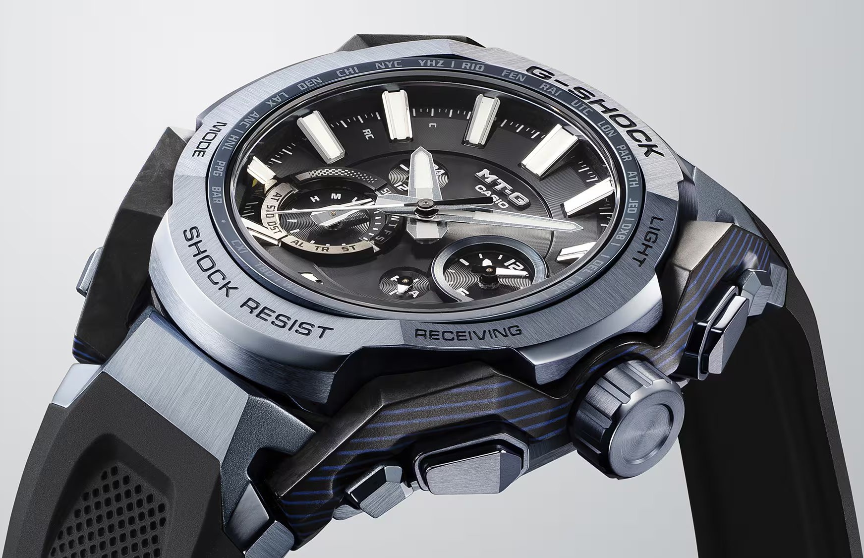 V modelovej rade MT-G nájdeme špičkové hodinky s analógovým zobrazením a bohatou sadou funkcií. Klasickým znakom modelov MT-G sú puzdrá a náramky zo špičkových a odolných materiálov ako sú oceľ, karbón, epoxidová živica. Ich kombinácia dodáva hodinkám nielen skvelú odolnosť, ale zároveň aj určitú vizuálnu hravosť. V rade MT-G nájdeme množstvo veľmi originálnych farebných prevedení s prekvapivo jemnými detailmi aj výraznými prvkami. Samozrejmosťou tu je solárny pohon, skrutkovacia korunka, rádiom riadený čas, Bluetooth, zafírové sklíčko a ďalšie.