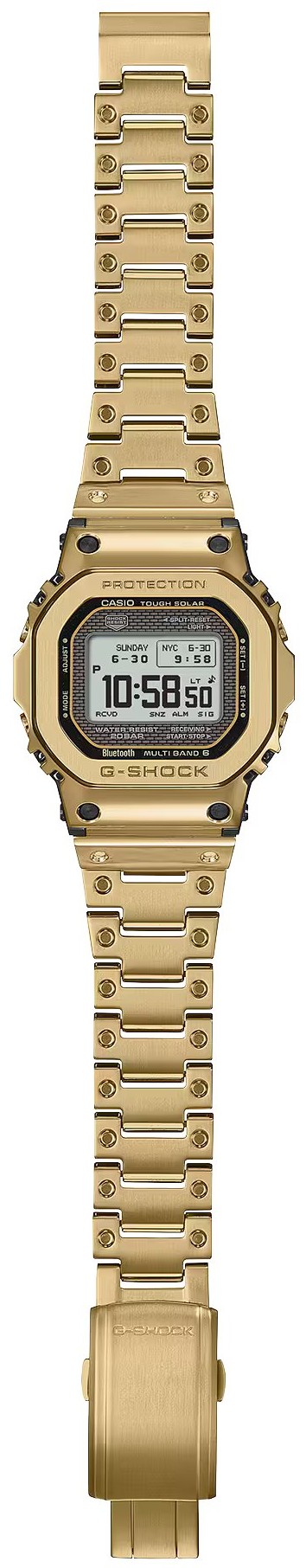 dátum , deň v týždni , stopky , indikácia slabej batérie , svetový čas , časovač , svetlo , kalendár , budík , rádiom riadené , Bluetooth , mesiac v roku