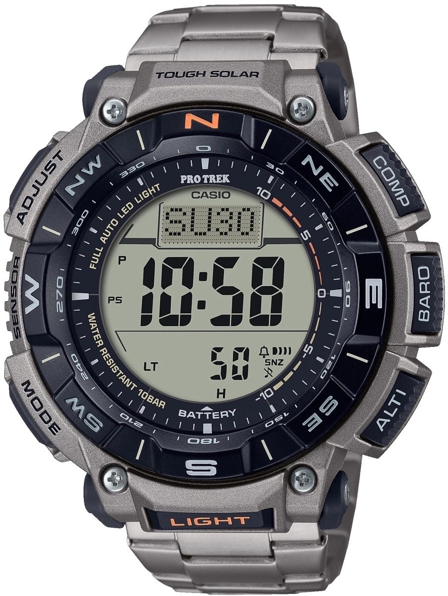 V kolekcii pánskych solárnych hodiniek Pro Trek ponúka Casio outdoorové modely určené pre aktívnych užívateľov. Hodinky majú zvýšenú odolnosť a vydržia hrubšie zaobchádzanie. Modely s digitálnym alebo kombinovaným zobrazením času majú obsiahlu sadu funkcií, ktoré prídu vhod nielen pri športe, ale aj pri cestovaní po celom svete. Okrem automatického podsvietenia alebo automatického kalendára, svetového času či budíkov nechýbajú ani funkcie ako barometer, kompas, teplomer či výškomer, ktoré jasne dokladajú dobrodružné zameranie týchto hodiniek.
