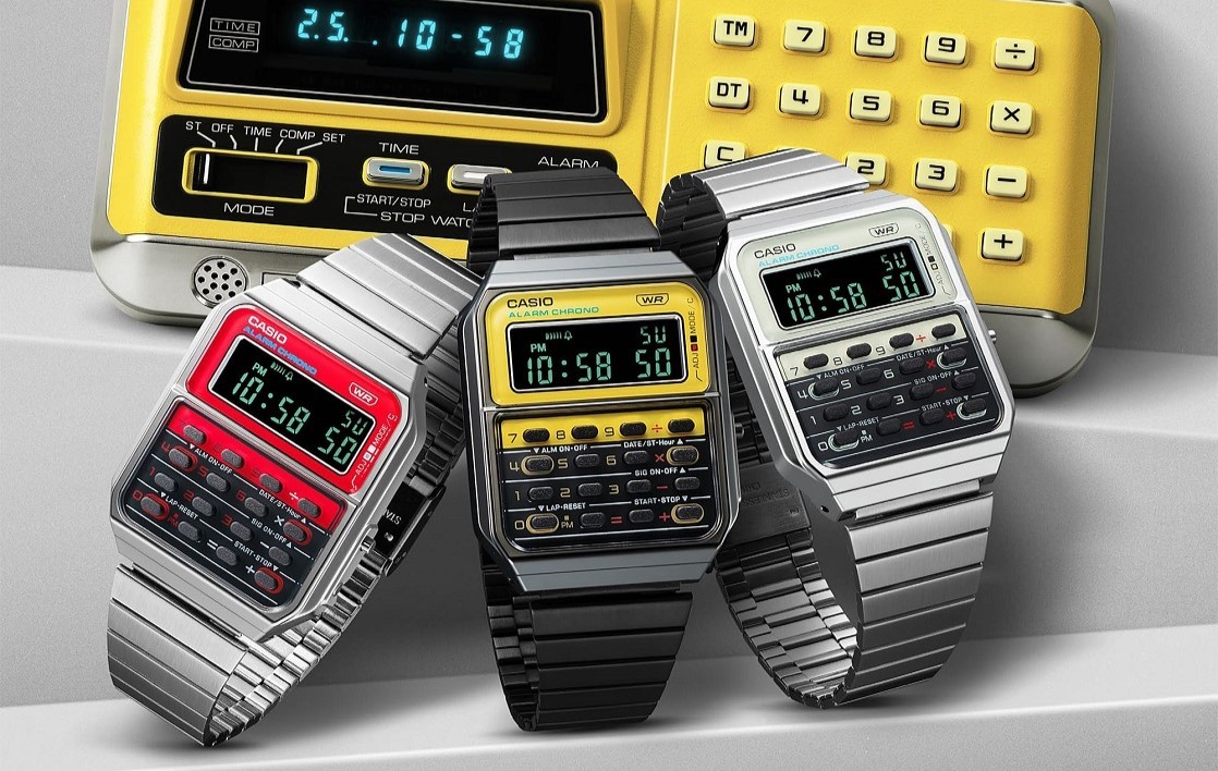 Keď firma o dvadsať rokov neskôr rozširovala svoje portfólio, padla voľba na náramkové hodinky, ktoré v tom čase prechádzali revolúciou v podobe nástupu quartzovej technológie. Práva na tú v kombinácii s digitálnym zobrazením času Casio najprv stavilo. Firma v tejto kombinácii videla príležitosť na využitie svojej pokročilej technológie integrovaných obvodov vyvinutej práve pre kalkulačky. Vďaka tomu boli prvé hodinky Casiotron taktiež prvými hodinkami s automatickým kalendárom, ktorý správne nastavoval dátum v kratších a dlhších mesiacoch. Rýchlo potom hodinky Casio dostali ďalšie pokročilé funkcie ako večný kalendár so správnou funkciou pre priestupné roky, stopky, svetový čas a ďalšie. Inovácie ale prichádzali aj v ďalších oblastiach: Casio prvýkrát použilo pre telo hodiniek plast, v roku 1983 firma uviedla prvú skutočne nárazu odolné hodinky G-Shock.