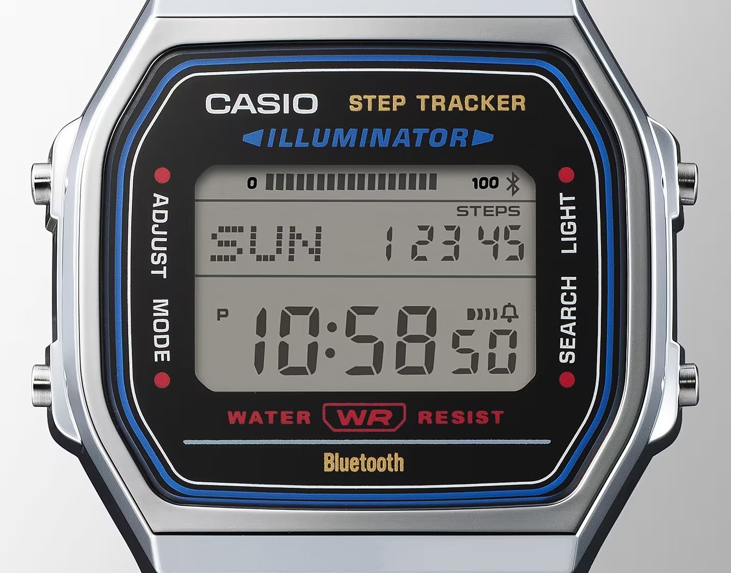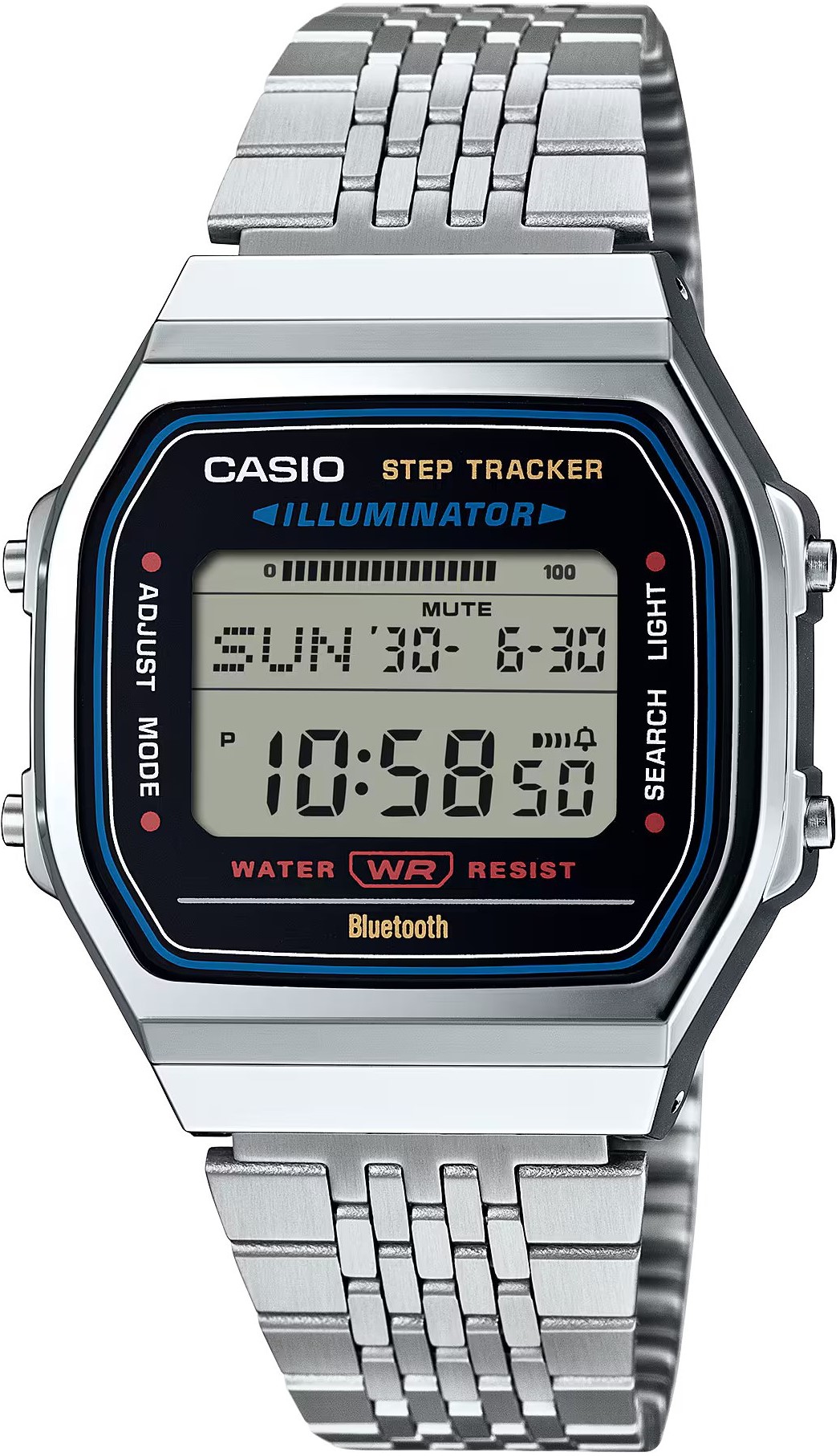 svetlo , dátum , duálny čas , kalendár , indikácia slabej batérie , deň v týždni , krokomer , časovač , budík , stopky , Bluetooth , mesiac v roku