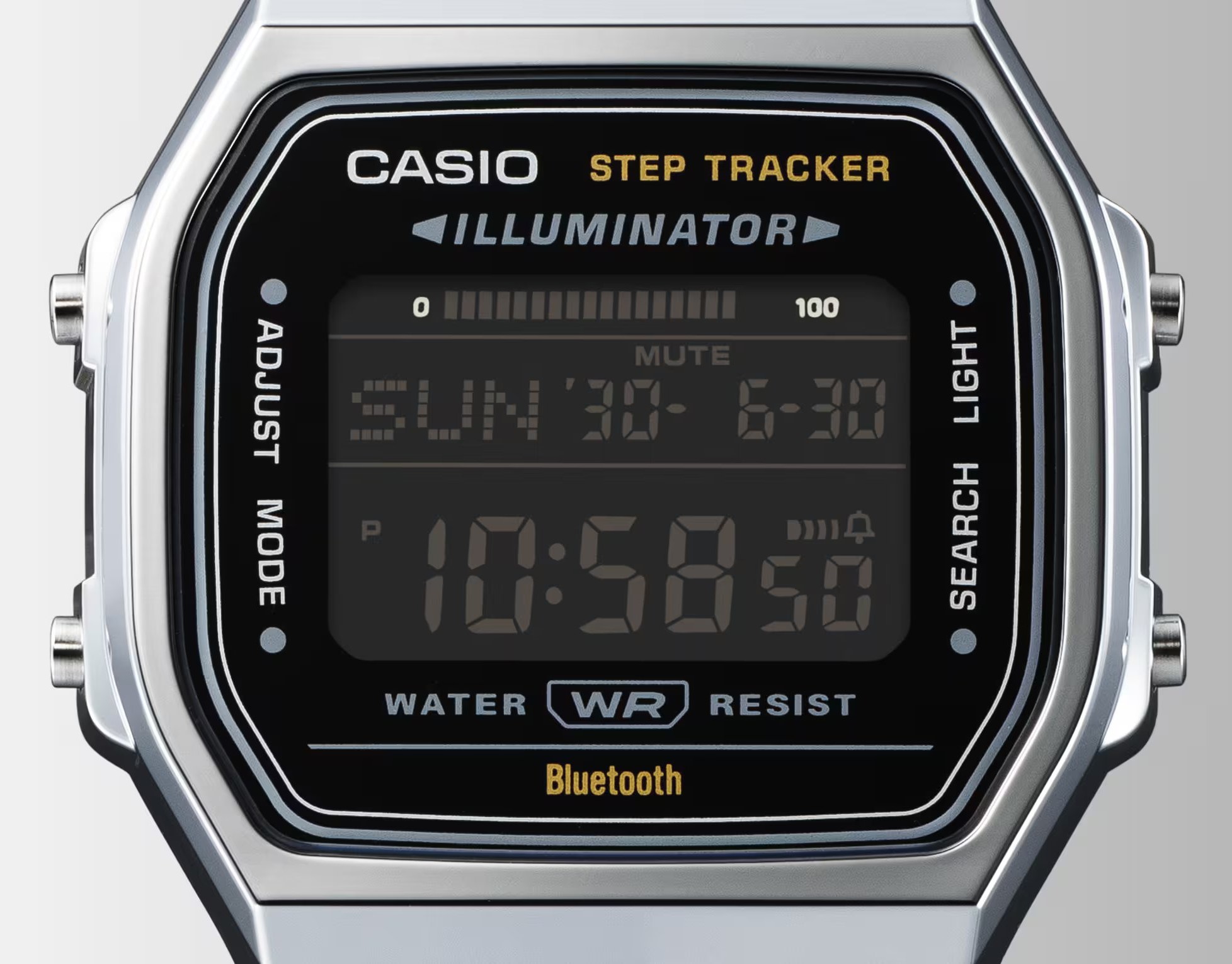 svetlo , duálny čas , kalendár , dátum , indikácia slabej batérie , deň v týždni , krokomer , časovač , stopky , budík , Bluetooth , mesiac v roku