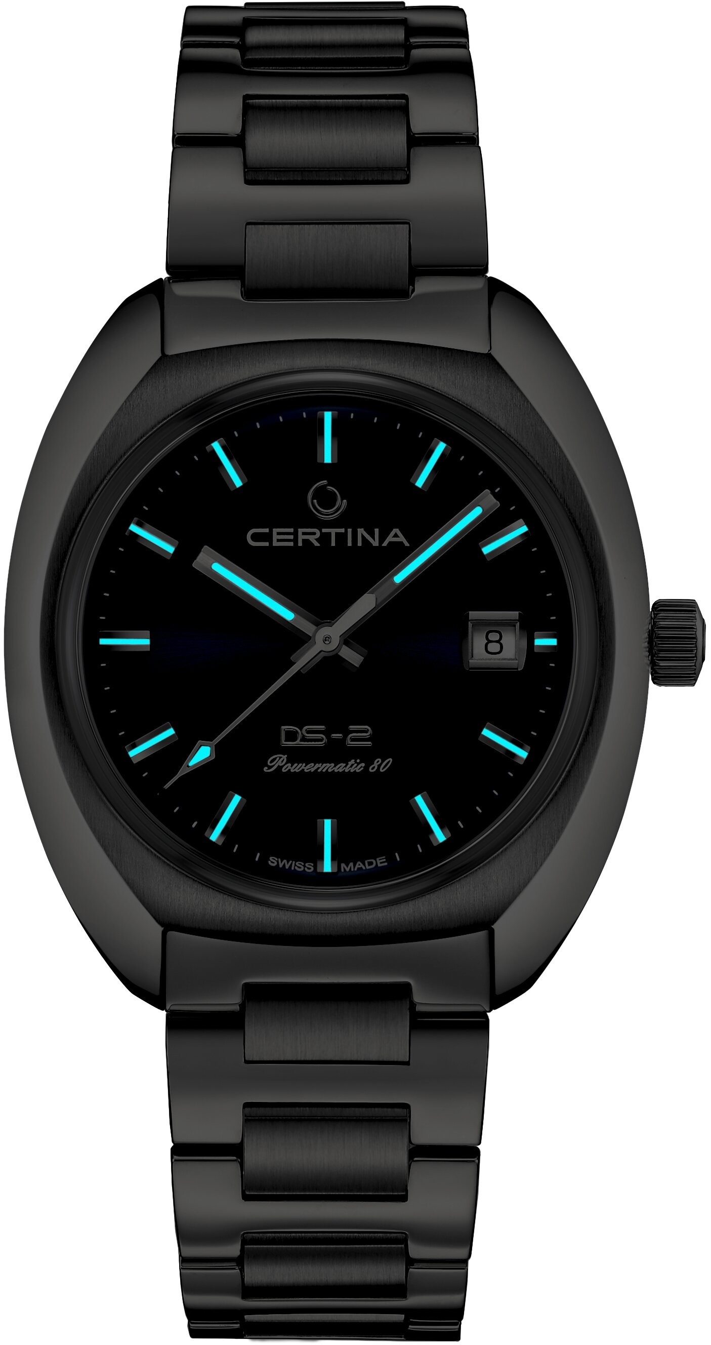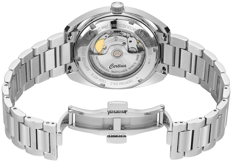 Certina DS-2 C024.407.11.041.01 sú pánske automatické hodinky na kovovom náramku v kombinácii brusu a lesku s motýlikovou sponou, ktoré nadväzujú na populárny spoľahlivý model DS-2 z roku 1968. Puzdro z nerezovej ocele v tvare „tonneau“, elipsy zakončené na oboch koncoch, má priemer 40 milimetrov a priehľadné viečko. Modrý číselník s efektom slnečného brusu a indikáciou dátumu je chránený klenutým zafírovým sklom s antireflexnou vrstvou. Aplikované hodinové indexy sú spolu s ručičkami pokryté luminiscenčným náterom Super-LumiNova®, ktorý garantuje perfektnú čitateľnosť za zhoršených svetelných podmienok. Pohon hodiniek zaisťuje mechanický strojček Powermatic 80.611 s automatickým náťahom a rezervou chodu približne 80 hodín. Kaliber je vybavený vláskom zotrvačky Nivachron™, čo je špeciálny antimagnetický materiál, vďaka ktorému sú hodinky veľmi odolné voči magnetickým poliam. Tento strojček s funkciou hackingu je možné v prípade potreby naťahovať aj ručne pomocou skrutkovacej korunky. Model disponuje technológiou DS (Double Security) používanou a zdokonaľovanou už od roku 1959, vďaka ktorej majú hodinky zvýšenú odolnosť voči nárazom a vode. Vodotesnosť hodiniek robí 20 ATM a sú vhodnou voľbou na šnorchlovanie a potápanie.