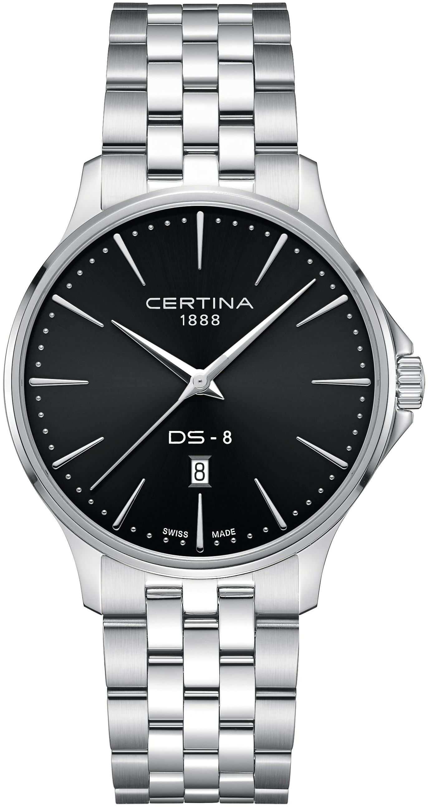 DS-8 kolekcia je univerzálna a cenovo dostupná rada hodiniek od značky Certina. Ponúka modely v niekoľkých štýloch s puzdrami z nerezovej ocele, s PVD úpravou a z titánu, ktoré sa hodia na každodenné nosenie aj do spoločnosti. Modely rady DS-8 používajú presné švajčiarske quartzové strojčeky alebo strojčeky ETA Powermatic 80, ktoré ponúkajú rezervu chodu 80 hodín. U všetkých je samozrejmosťou vodotesnosť 100 metrov a zafírové sklíčko.
