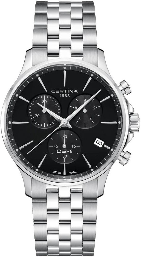 DS-8 kolekcia je univerzálna a cenovo dostupná rada hodiniek od značky Certina. Ponúka modely v niekoľkých štýloch s puzdrami z nerezovej ocele, s PVD úpravou a z titánu, ktoré sa hodia na každodenné nosenie aj do spoločnosti. Modely rady DS-8 používajú presné švajčiarske quartzové strojčeky alebo strojčeky ETA Powermatic 80, ktoré ponúkajú rezervu chodu 80 hodín. U všetkých je samozrejmosťou vodotesnosť 100 metrov a zafírové sklíčko.