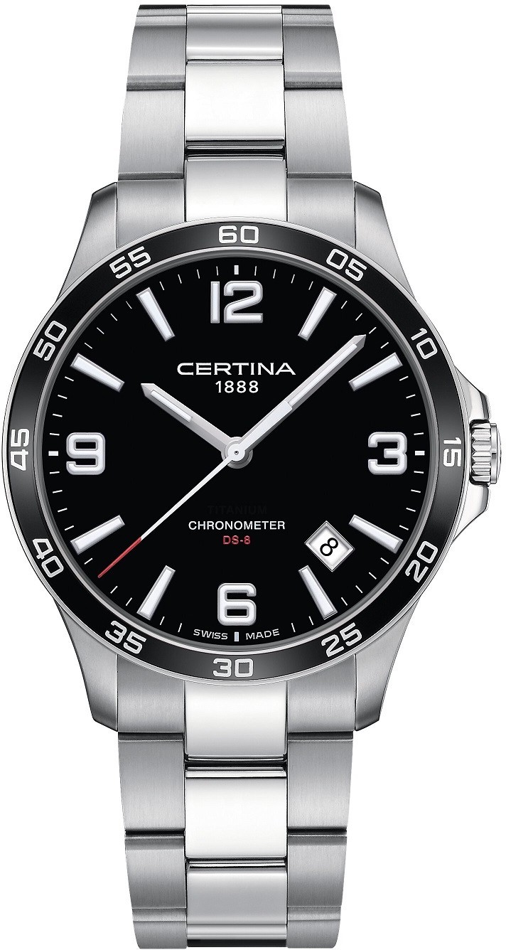 Certina DS-8 Quartz Precidrive Chronometer C033.851.11.057.00 sú pánske batériové hodinky na kovovom náramku v kombinácii brusu a lesku s motýlikovou sponou. Puzdro z nerezovej ocele doplnené pevnou lunetou s čiernou hliníkovou vložkou s minútovou stupnicou má priemer 41 milimetrov a viečko značené logom v tvare korytnačky, ktoré reprezentuje robustnosť a dlhú životnosť hodiniek Certina. Čierny číselník s indikáciou dáta je chránený odolným zafírovým sklom s antireflexnou vrstvou. Aplikované hodinové indexy sú spolu s ručičkami pokryté luminiscenčným náterom Super-LumiNova®, ktorý garantuje perfektnú čitateľnosť za zhoršených svetelných podmienok. Pohon hodiniek zaisťuje quartzový strojček ETA F07.412 s technológiou Precidrive s presnosťou +/- 10 sekúnd za rok a indikáciou slabej batérie. Hodinky s C.O.S.C. certifikáciou, ktorá je zárukou vysokej presnosti, nesú označenie „Chronometer“. Model disponuje technológiou DS (Double Security) používanou a zdokonaľovanou už od roku 1959, vďaka ktorej majú hodinky zvýšenú odolnosť voči nárazom a vode. Vodotesnosť hodiniek je 10 ATM a je teda vhodná na kúpanie alebo šnorchlovanie.