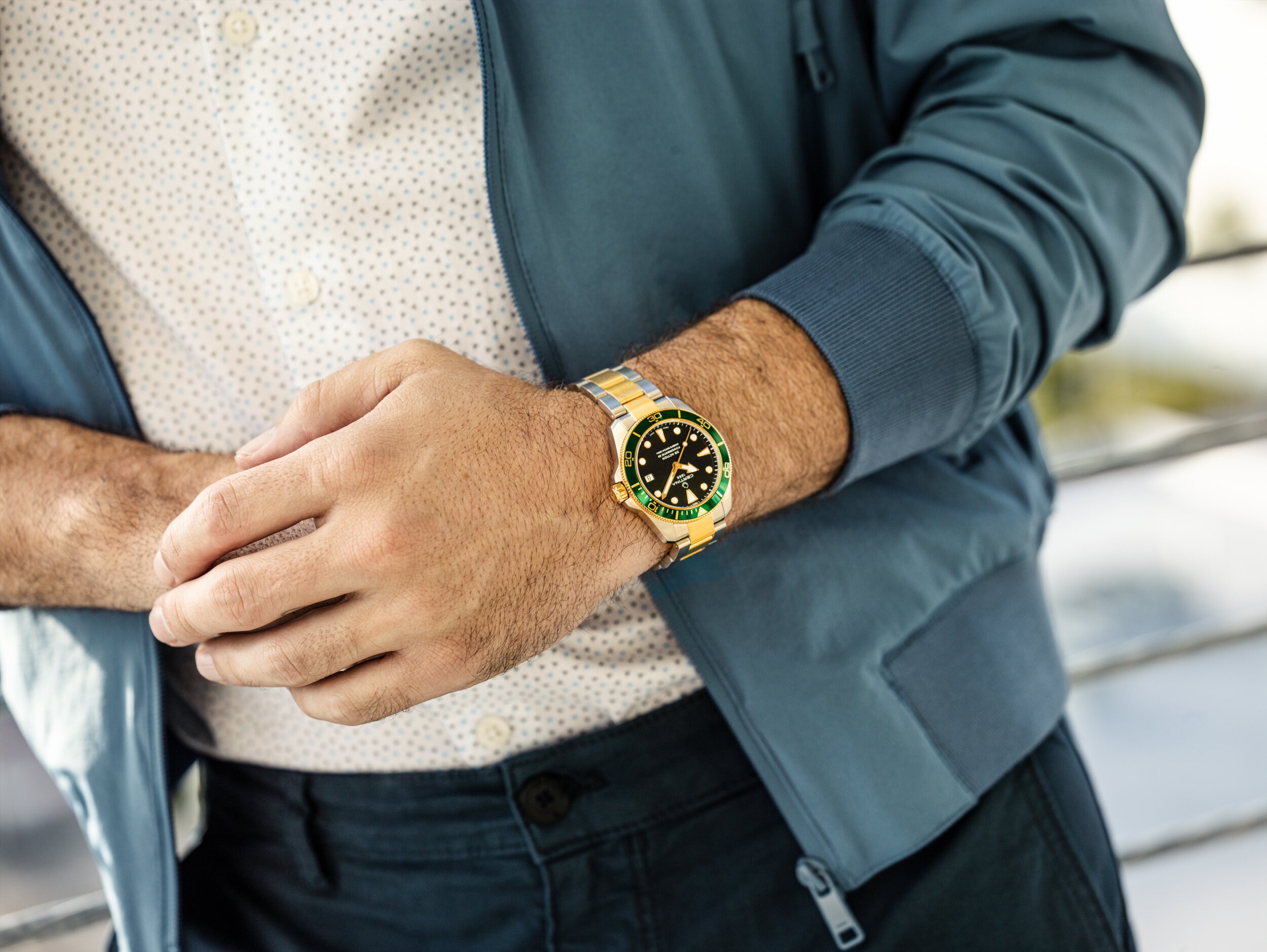 Certina DS Action Diver Powermatic 80 C032.807.22.051.01 sú automatické hodinky na kovovom bicolor náramku s preklápacou sponou. Puzdro z nerezovej ocele má priemer 38 milimetrov a viečko značené logom v tvare korytnačky, ktoré reprezentuje robustnosť a dlhú životnosť hodiniek Certina. Hodinky sú vybavené jednosmerne otočnou lunetou v zlatej povrchovej PVD úprave so zelenou hliníkovou vložkou s potápačskou stupnicou. Čierny číselník s indikáciou dáta je chránený odolným zafírovým sklom s antireflexnou vrstvou. Aplikované hodinové indexy sú spolu s ručičkami pokryté luminiscenčným náterom Super-LumiNova®, ktorý garantuje perfektnú čitateľnosť za zhoršených svetelných podmienok. Pohon hodiniek zaisťuje mechanický strojček Powermatic 80.611 s automatickým náťahom a rezervou chodu približne 80 hodín. Kaliber je vybavený vláskom zotrvačky Nivachron, čo je špeciálny antimagnetický materiál, vďaka ktorému sú hodinky veľmi odolné voči magnetickým poliam. Tento strojček s funkciou hackingu je možné v prípade potreby naťahovať aj ručne pomocou skrutkovacej korunky. Model disponuje technológiou DS (Double Security) používanou a zdokonaľovanou už od roku 1959, vďaka ktorej majú hodinky zvýšenú odolnosť voči nárazom a vode. Vodotesnosť hodiniek je 30 ATM a s certifikáciou ISO 6425 sú vhodnou voľbou pre prístrojové potápanie.