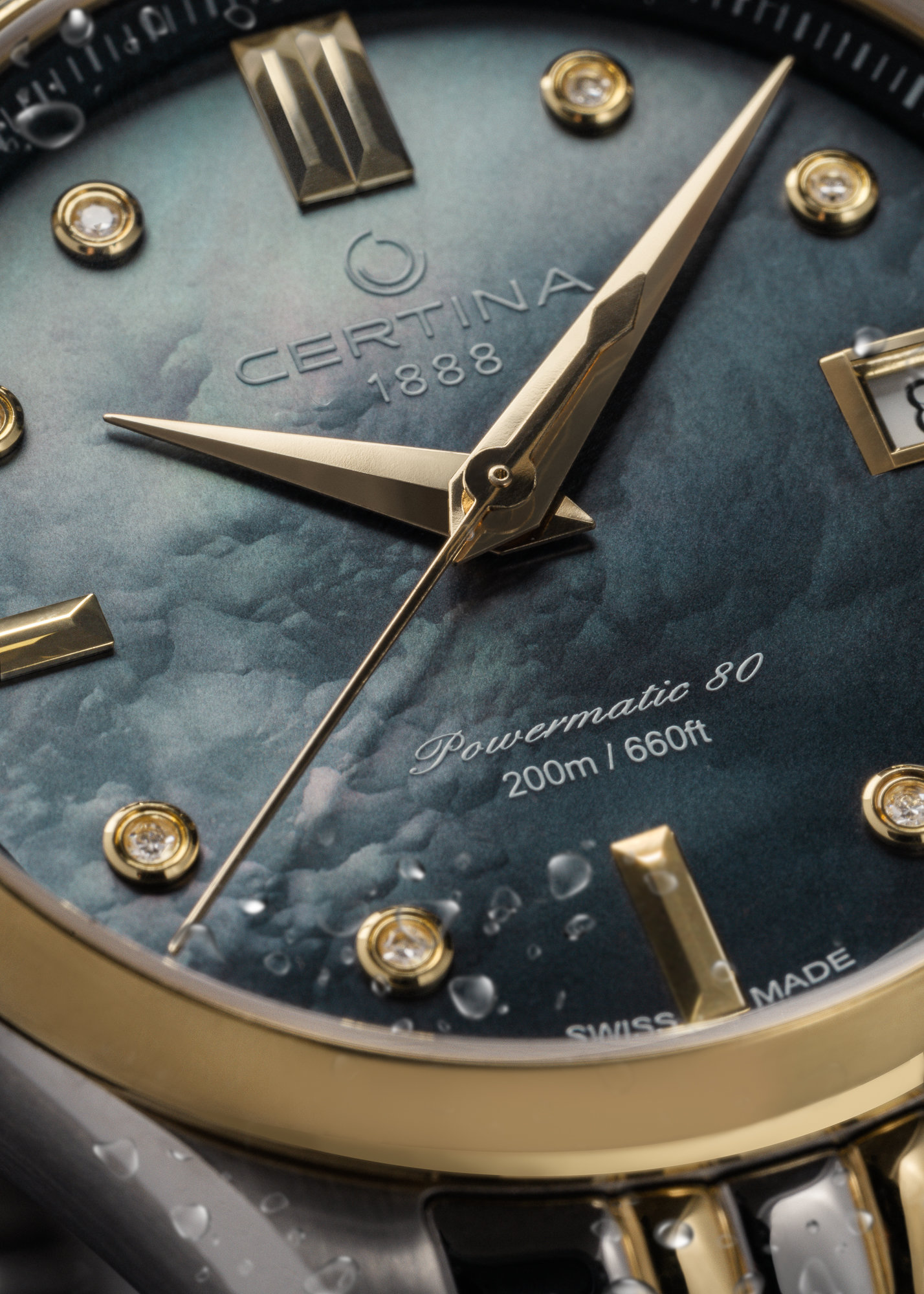 Certina DS Action Lady Powermatic 80 C032.207.22.126.00 sú dámske automatické hodinky na kovovom bicolor náramku s motýlikovou sponou. Puzdro z nerezovej ocele má priemer 34,5 milimetra, vonkajšiu lunetu a korunku s PVD úpravou zlatej farby a priehľadné viečko. Modrý perleťový číselník s indikáciou dáta je chránený odolným zafírovým sklom s antireflexnou vrstvou a jeho krása vyniká najmä pod priamym svetlom, kedy môžeme pozorovať hru farieb perlete Aplikované hodinové indexy s ručičkami v zlatej farbe dopĺňa 8 diamantov. Pohon hodiniek zaisťuje mechanický strojček. Powermatic 80.611 s automatickým náťahom a rezervou chodu približne 80 hodín. Tento kaliber je vybavený vláskom zotrvačky Nivachron™, čo je špeciálny antimagnetický materiál, vďaka ktorému sú hodinky veľmi odolné voči magnetickým poliam. Ide o strojček s funkciou hackingu, ktorý je možné v prípade potreby naťahovať aj ručne pomocou signovanej korunky. Model disponuje technológiou DS (Double Security) používanou a zdokonaľovanou už od roku 1959, vďaka ktorej sú hodinky odolnejšie voči nárazom a majú zvýšenú vodeodolnosť. Vodotesnosť hodiniek robí 20 ATM a sú tak vhodnou voľbou na šnorchlovanie a potápanie.