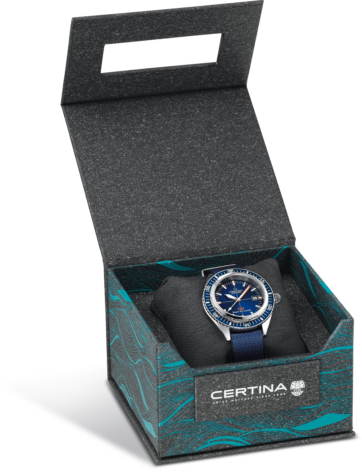 Certina DS Super PH500M C037.407.18.040.10 sú pánske automatické hodinky na modro-čiernom NATO remienku s tŕňovou sponou. Puzdro z nerezovej ocele v kombinácii brusu a lesku má priemer 43 milimetrov, jednosmerne otočnú lunetu s hliníkovou vložkou s potápačskou stupnicou a viečko značené logom Sea Turtle Conservancy, s ktorou bola táto špeciálna edícia pripravovaná. Modrý číselník s efektom slnečného brusu a indikáciou dáta je linkami delený na sektory a chránený odolným zafírovým sklom s antireflexnou vrstvou. Hodinové indexy sú spoločne s ručičkami a časťou lunety pokryté luminiscenčným náterom Super-LumiNova®, ktorý garantuje perfektnú čitateľnosť za zhoršených svetelných podmienok. Pohon hodiniek zaisťuje mechanický strojček Powermatic 80.611 s automatickým náťahom a rezervou chodu približne 80 hodín. Kaliber je vybavený vláskom zotrvačky Nivachron™, čo je špeciálny antimagnetický materiál, vďaka ktorému sú hodinky veľmi odolné voči magnetickým poliam. Tento strojček s funkciou hackingu je možné v prípade potreby naťahovať aj ručne pomocou skrutkovacej korunky. Model disponuje technológiou DS (Double Security) používanou a zdokonaľovanou už od roku 1959, vďaka ktorej majú hodinky zvýšenú odolnosť voči nárazom a vode. Vodotesnosť hodiniek je 50 ATM as certifikáciou ISO 6425 sú vhodnou voľbou pre prístrojové potápanie.