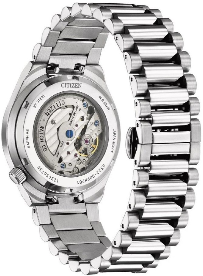 Hodinky z kolekce Citizen Tsuyosa se vyznačují populárním designem s integrovaným náramkem, který byl tolik populární v 70. letech minulého století a dnes opět nabývá na oblíbenosti. Průměr pouzdra z ušlechtilé nerezové oceli je 40 mm, což v kombinaci se zapuštěnou korunkou pro nastavování času na pozici 4. hodiny zaručuje komfortní nošení. Modrý číselník s radiální strukturou, malou sekundovou ručkou na šesté hodině a aplikovanými luminiscenčními indexy je kryt safírovým sklíčkem. Pohon hodinek zajišťuje automatický strojek Citizen 8322 s rezervou nátahu 60 hodin. Vodotěsnost hodinek je 5 ATM.
