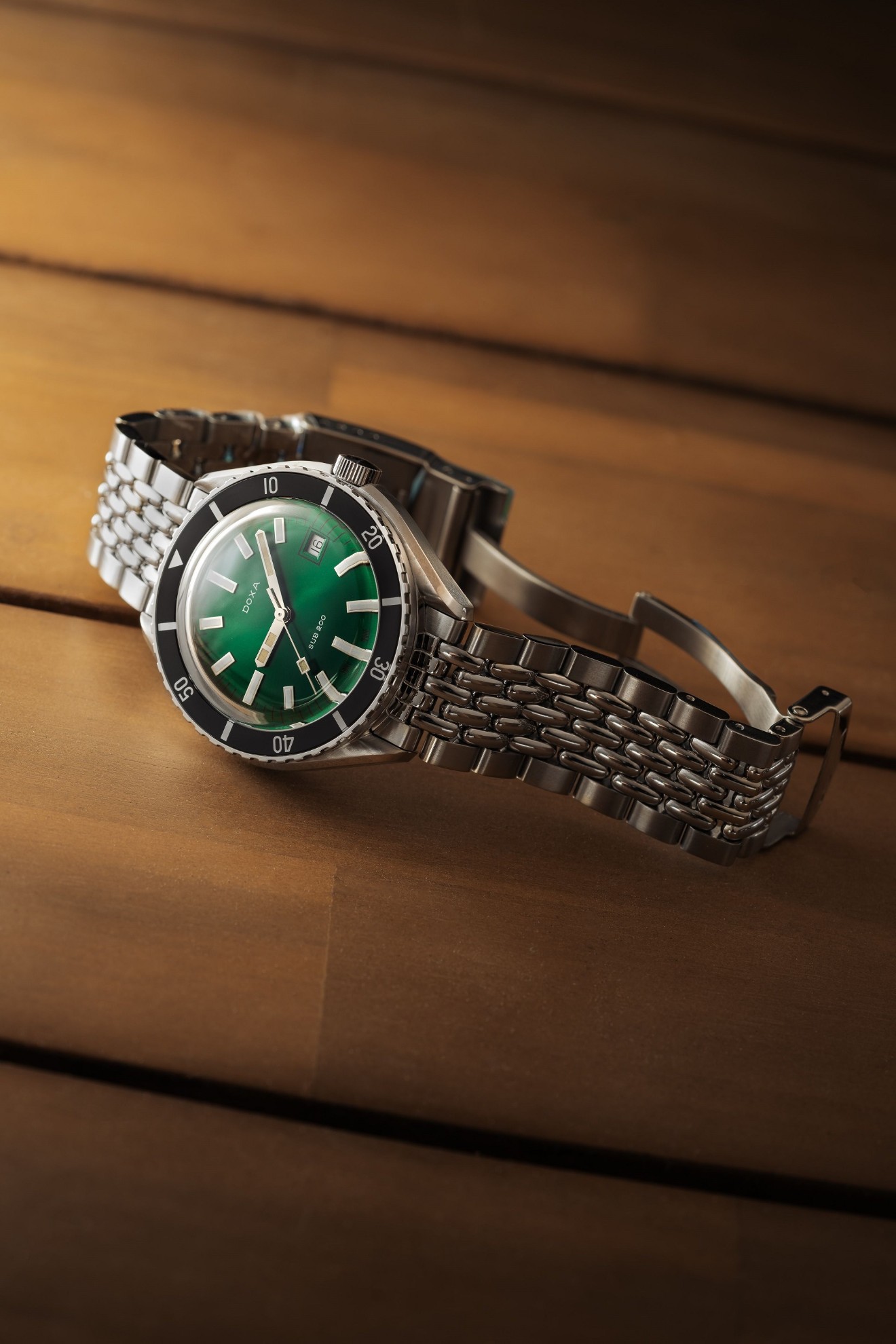 Doxa SUB 200 Sea Emerald 799.10.131.10 sú pánske automatické hodinky na oceľovom „beads of rice" náramku s preklápacou sponou, ktorý svoj názov získal preto, že jeho stredové dieliky pripomínajú zrnká ryže. Puzdro z nehrdzavejúcej ocele má priemer 42 milimetrov, skrutkovaciu korunku a jednosmerne otočnú lunetu s čiernou zafírovou vložkou s minútovou stupnicou. Zelený číselník s efektom slnečného brusu a ukazovateľom dátumu na tretej hodine je chránený odolným zafírovým sklom s antireflexnou vrstvou. Ručičky, indexy aj lunetu pokrýva luminiscenčný náter SuperLuminova®, ktorý po nasvietení garantuje dokonalú čitateľnosť za zhoršených svetelných podmienok. Pohon hodín zabezpečuje mechanický strojček s automatickým náťahom a rezervou chodu 38 hodín. S vodotesnosťou 20 ATM sú hodinky vhodné pre hlbinné potápanie.
