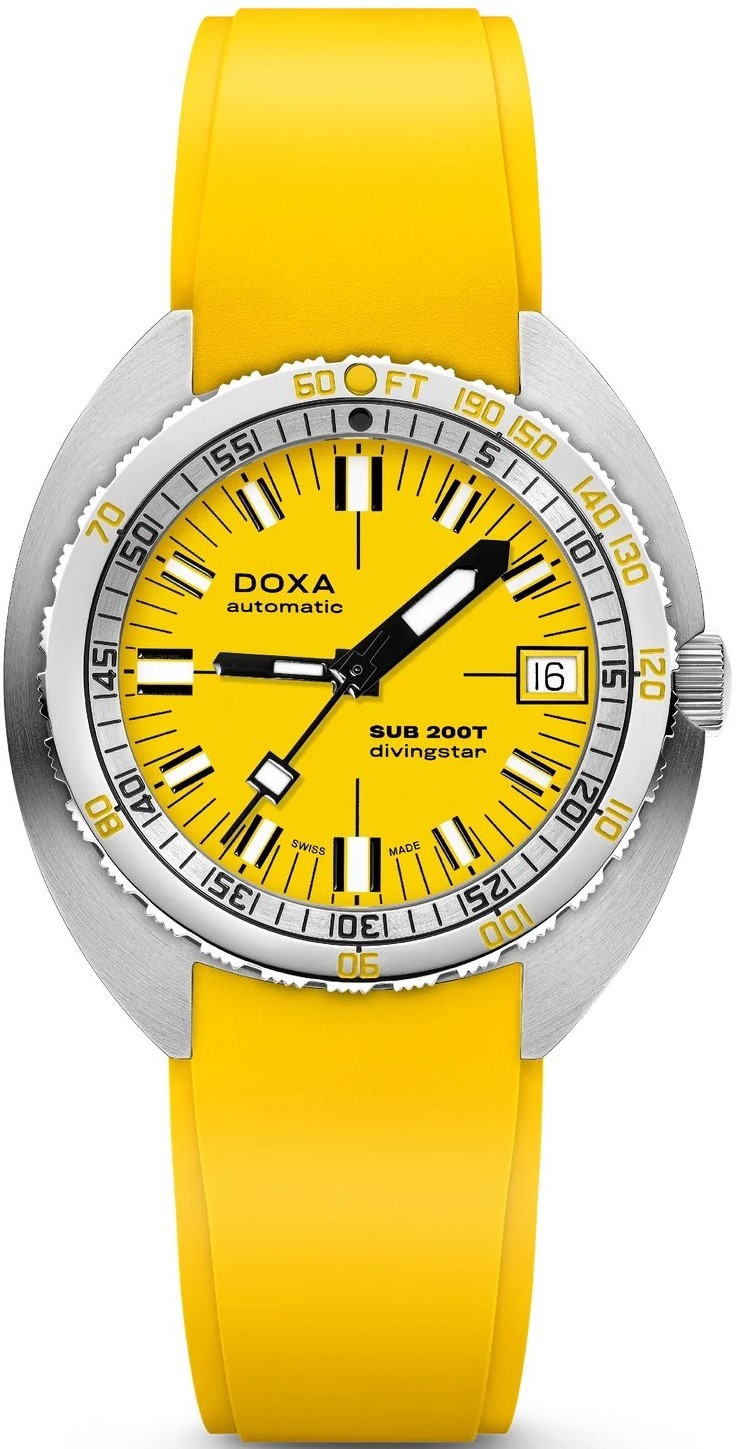 o hodinky, ktoré ťažia z celej novodobej histórie značky. Ide totiž o modernú a zmenšenú interpretáciu legendárneho modelu SUB 300, ktorý taktiež Doxa stále ponúka. Charakteristické puzdro vankúšikového tvaru tu dostalo priemer 39 milimetrov a môže sa pochváliť hrúbkou iba 10,7 milimetra. Doxa SUB 200T sú tak plnohodnotné potápačské hodinky vhodné aj pre užívateľov s menším zápästím. Dizajn hodiniek využíva všetky typické prvky legendárneho potápačského modelu 300. K siedmim výrazným farbám číselníkov, ktoré sú vôbec po prvýkrát dostupné nielen