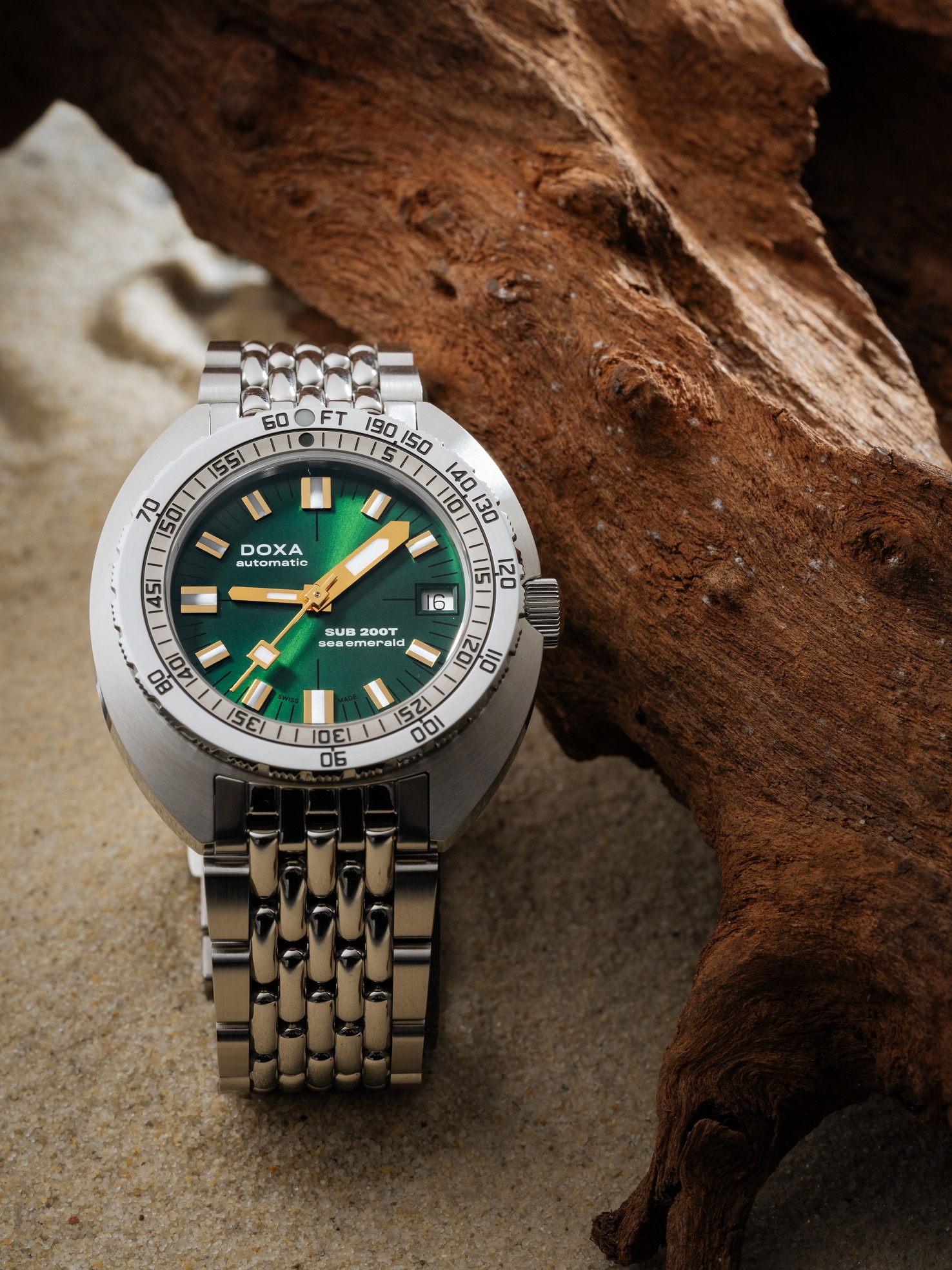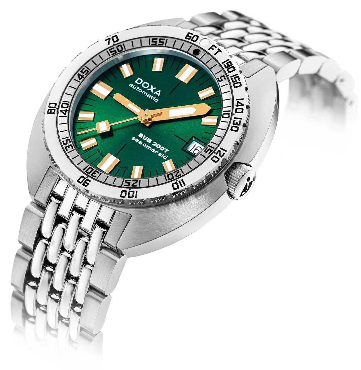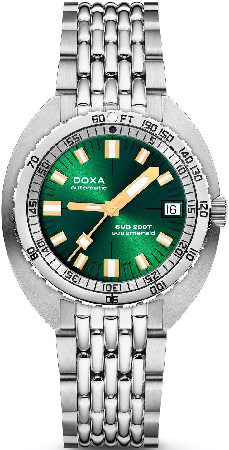 Doxa SUB 200T je model uvedený v roku 2024, avšak zároveň ide o hodinky, ktoré ťažia z celej novodobej histórie značky. Ide totiž o modernú a zmenšenú interpretáciu legendárneho modelu SUB 300, ktorý taktiež Doxa stále ponúka. Charakteristické puzdro vankúšikového tvaru tu dostalo priemer 39 milimetrov a môže sa pochváliť hrúbkou iba 10,7 milimetra. Doxa SUB 200T sú tak plnohodnotné potápačské hodinky vhodné aj pre užívateľov s menším zápästím. Dizajn hodiniek využíva všetky typické prvky legendárneho potápačského modelu 300. K siedmim výrazným farbám číselníkov, ktoré sú vôbec po prvýkrát dostupné nielen v matnom, ale aj v prevedení so sunburst efektom, pridáva Doxa aj ôsmu farbu - zelenú s názvom Sea Emerald. Model SUB 200T má aj typickú lunetu so zobrazením možnej hĺbky a času na potápanie bez dekompresie a výrazné rúčky pre maximálnu čitateľnosť pod hladinou. Samozrejmosťou je aj špičkové mechanické spracovanie a odolnosť voči vode do hĺbky 200 metrov. Okrem pre značku typického beads-of-rice oceľového náramku je možné modely 200T zaobstarať aj na gumovom remienku, ktorého farba ladí s číselníkom.