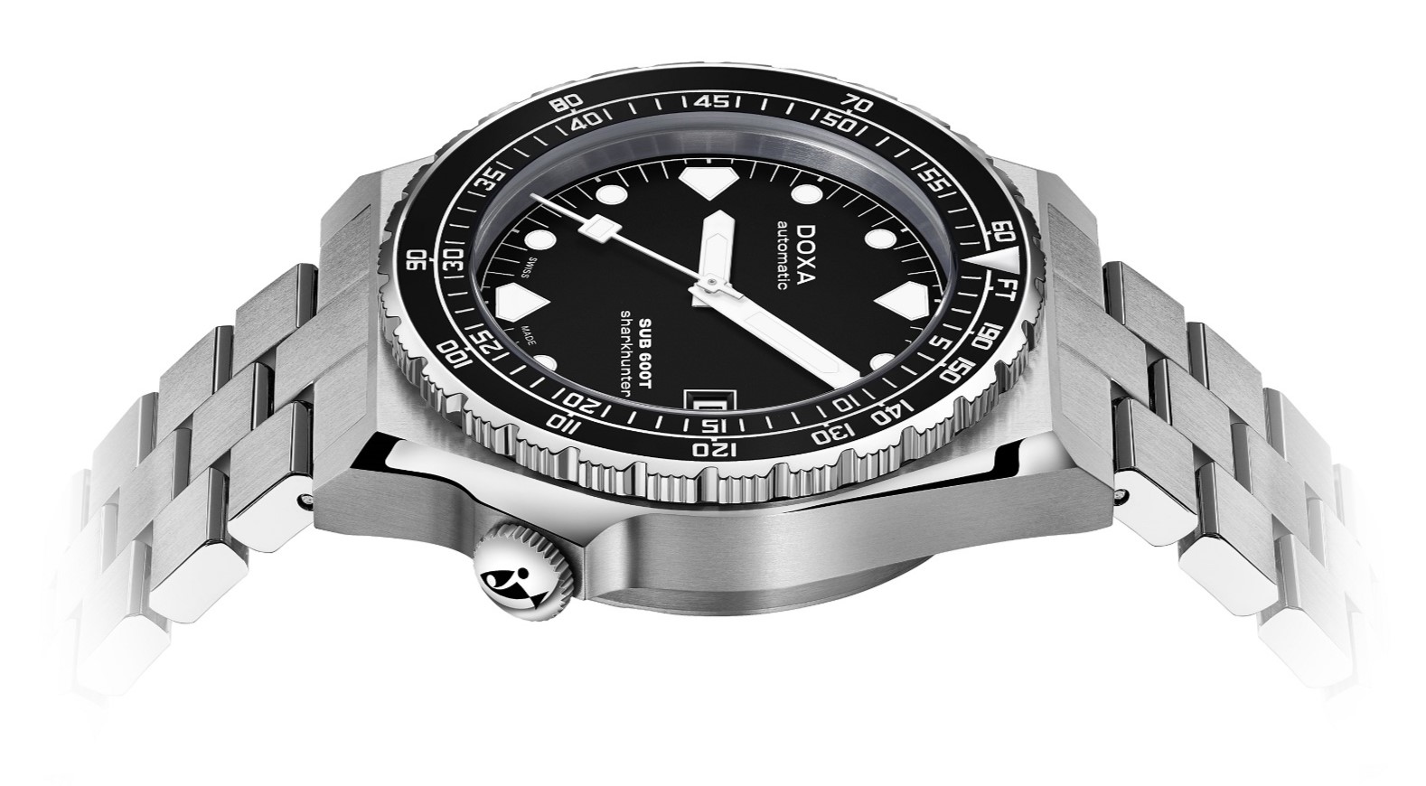 Doxa SUB 600T Sharkhunter 861.10.101B.10 sú pánske automatické potápačské hodinky na oceľovom náramku s preklápacou sponou. Puzdro z nehrdzavejúcej ocele má priemer 40 milimetrov, skrutkovaciu korunku a jednosmerne otočnú lunetu s čiernou keramickou vložkou s dvojitou stupnicou. Minútová stupnica na zobrazenie doby ponoru a stopová stupnica na hĺbku. Čierny číselník s ukazovateľom dátumu a tromi indexmi v tvare žraločieho zubu je chránený odolným zafírovým sklom. Ručičky a indexy pokrýva luminiscenčný náter SuperLuminova®, ktorý po nasvietení garantuje dokonalú čitateľnosť za zhoršených svetelných podmienok. Pohon hodín zabezpečuje mechanický strojček s automatickým náťahom a rezervou chodu 38 hodín. S vodotesnosťou 60 ATM sú hodinky vhodné na prístrojové potápanie.