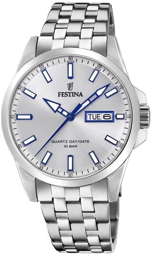 Festina Classics 20357/1 sú pánske batériové hodinky v klasickom štýle na oceľovom náramku s preklápacou sponou. Puzdro z nerezovej ocele má priemer 41 milimetrov. Priehľadný strieborný číselník s efektom slnečného brusu a ukazovateľom dátumu a dňa v týždni je chránený odolným minerálnym sklíčkom. Ručičky a indexy majú luminiscenčný náter, ktorý po nasvietení uľahčuje čitateľnosť za zhoršených svetelných podmienok. Chod hodiniek zaisťuje quartzový strojček Miyota 1S02 s presnosťou ±20 sekúnd za mesiac. S vodotesnosťou 10 ATM sú hodinky vhodné na plávanie či šnorchlovanie.