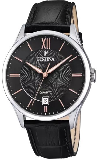 Festina Classics 20426/6 sú pánske elegantné batériové hodinky na čiernom koženom remienku s tŕňovou sponou. Puzdro z nerezovej ocele má priemer 43 milimetrov. Čierny číselník s radiálnou štruktúrou a ukazovateľom dátumu na šiestej hodine je chránený odolným minerálnym sklíčkom. Ručičky majú luminiscenčný náter, ktorý po nasvietení uľahčuje čitateľnosť za zhoršených svetelných podmienok. Chod hodiniek zaisťuje quartzový strojček Miyota 2415 s presnosťou ±20 sekúnd za mesiac. S vodotesnosťou 5 ATM sú hodinky odolné proti dažďu a pri sprchovaní.