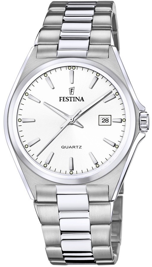 Festina Classics 20552/2 sú pánske batériové hodinky v klasickom štýle na oceľovom náramku v kombinácii matu a lesku s preklápacou sponou. Puzdro z nerezovej ocele má priemer 40 milimetrov. Priehľadný biely číselník s ukazovateľom dátumu na tretej hodine je chránený odolným minerálnym sklíčkom. Ručičky majú luminiscenčný náter, ktorý po nasvietení uľahčuje čitateľnosť za zhoršených svetelných podmienok. Chod hodiniek zaisťuje quartzový strojček Miyota GM12 s presnosťou ±20 sekúnd za mesiac. S vodotesnosťou 5 ATM sú hodinky odolné proti dažďu a pri sprchovaní.