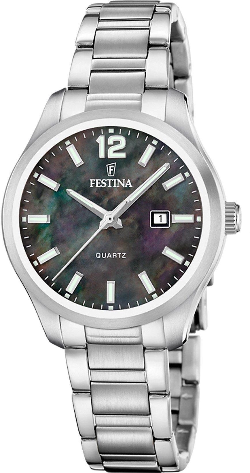 Festina Classics 20737/7 sú dámske batériové hodinky v klasickom štýle na oceľovom náramku s preklápacou sponou. Puzdro z nerezovej ocele má priemer 34 milimetrov. Tmavý perleťový číselník s ukazovateľom dátumu na tretej hodine je chránený odolným minerálnym sklíčkom a jeho krása vyniká najmä na priamom svetle, kedy môžeme pozorovať hru farieb perlete. Ručičky a indexy majú luminiscenčný náter, ktorý po nasvietení uľahčuje čitateľnosť za zhoršených svetelných podmienok. Chod hodiniek zaisťuje quartzový strojček Myyota 2015 s presnosťou ±20 sekúnd za mesiac. S vodotesnosťou 5 ATM sú hodinky odolné proti dažďu a pri sprchovaní.