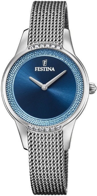 Festina Mademoiselle 20494/2 sú dámske batériové hodinky na oceľovom milánskom ťahu s posuvnou sponou. Puzdro z nerezovej ocele má priemer 30,2 milimetra a lunetu zdobenú čírymi zirkónmi. Modrý číselník s efektom slnečného brusu je chránený odolným minerálnym sklíčkom. Pohon hodiniek zaisťuje quartzový strojček Miyota GL20 s presnosťou ±20 sekúnd za mesiac. S vodotesnosťou 5 ATM sú hodinky odolné proti dažďu a pri sprchovaní.